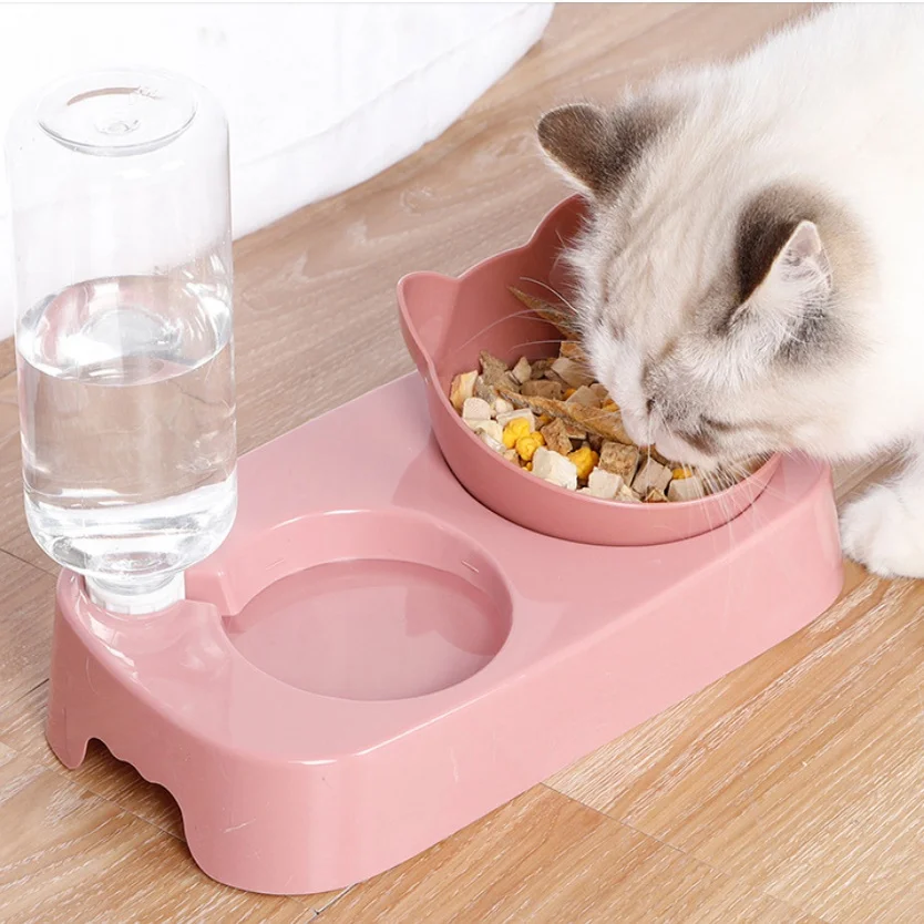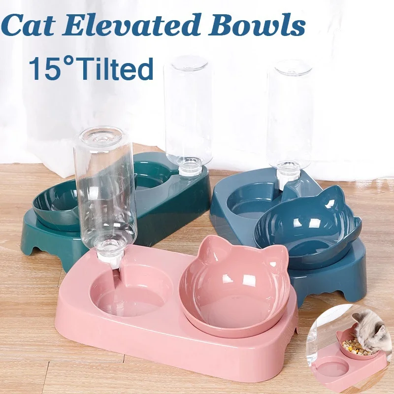 Pet Automatikus Víz Adagoló Macska Kutya Megemelt Dupla Étel -Adagoló És Víztengely 15 ° -Kal Lehajolt Védett Nyaki Macska Kellékek