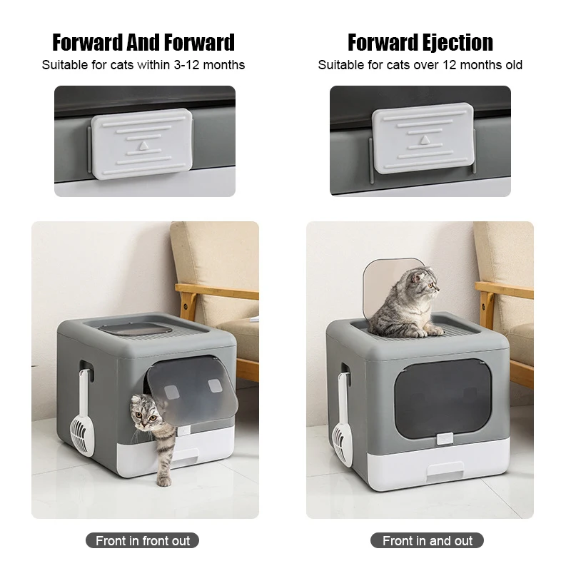 Pet Cat Cat Összecsukható Alom Doboz Teljesen Zárt Szövőszörös Dezodor Wc-K Macskákhoz Kétirányú Lapáttal Nagy Űr Macska Alom Tálcával