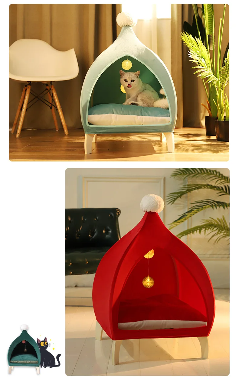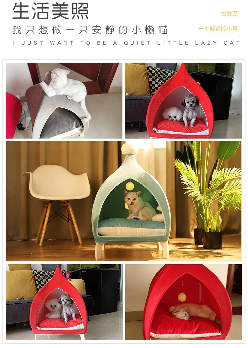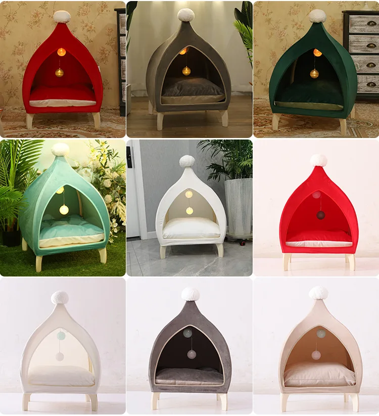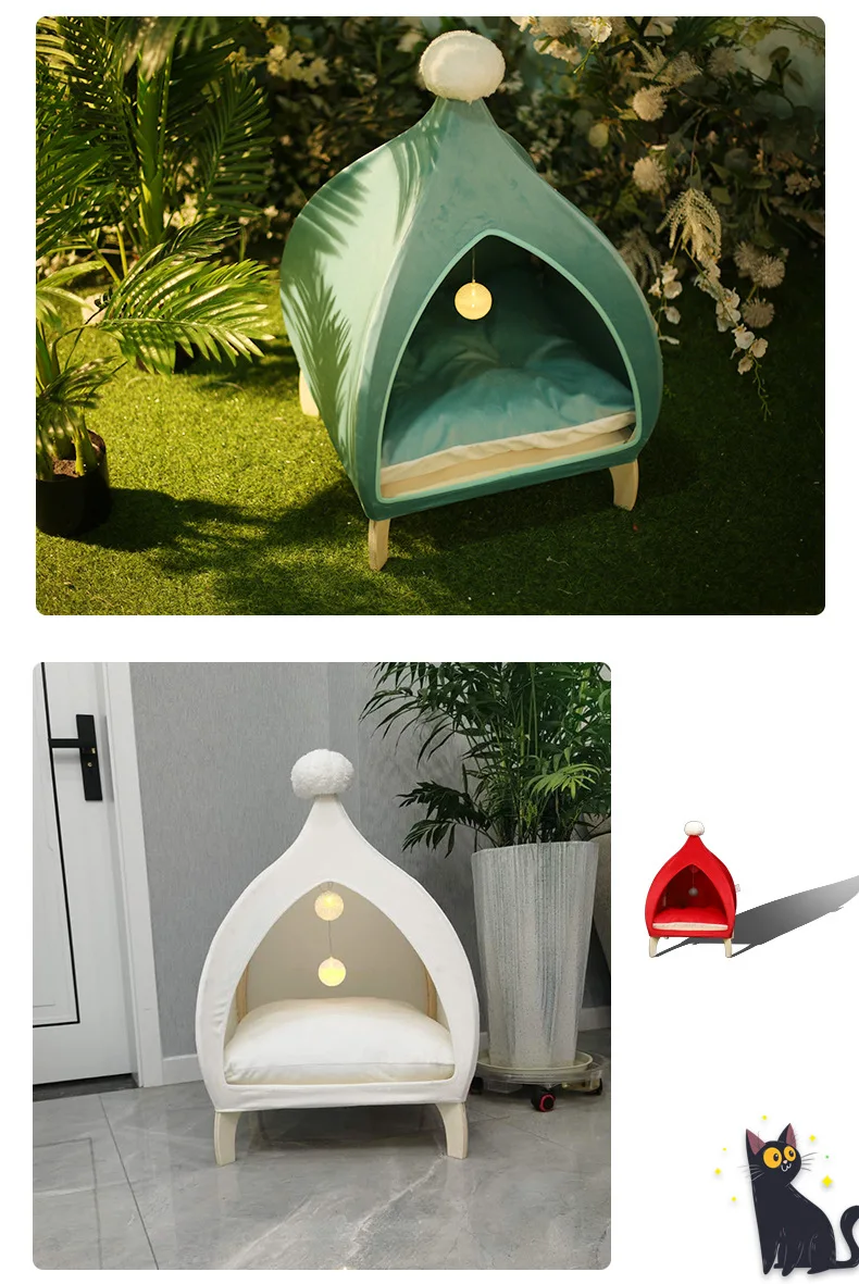 Pet Fészek Háziállatok Számára 20 Kg -Os Új Macska Sátor Erős Fa Keret Fészek Egzotikus Stílusú Négy Évszak Eltávolítható Kis Kutya Fészek Macskaágy