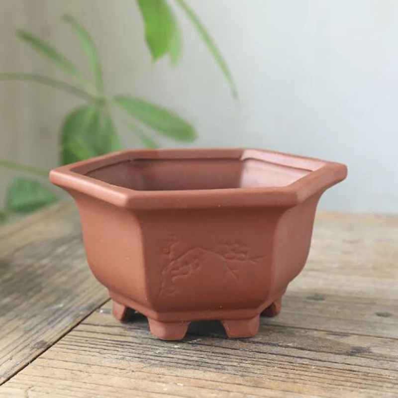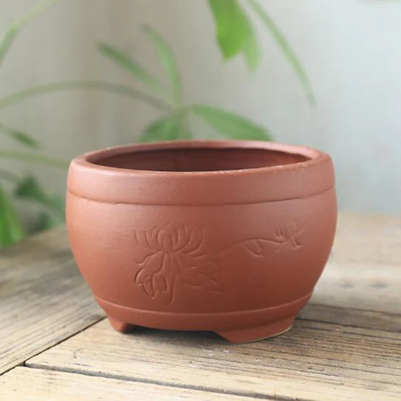 Piros Agyag Lélegző Virágcserép -Kerámia Zamatos Növényi Edény Váza Bonsai Ültetvényes Virágtartály Nappali Erkély Lakberendezés
