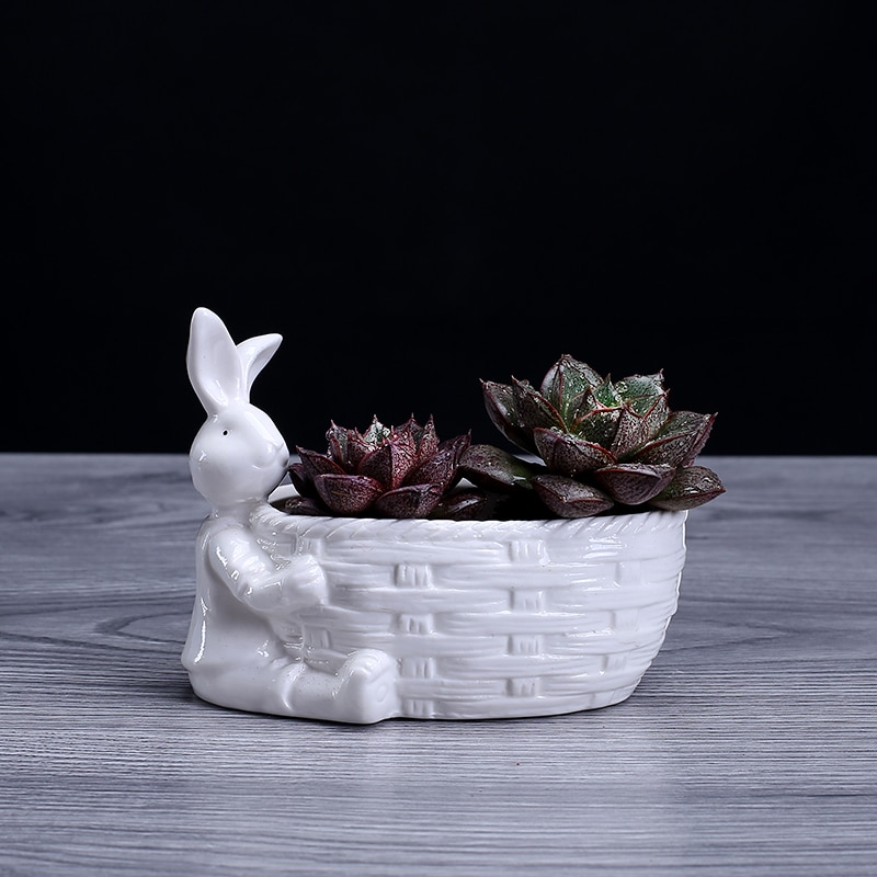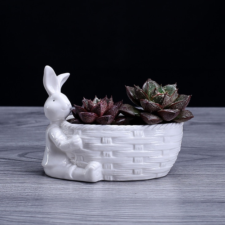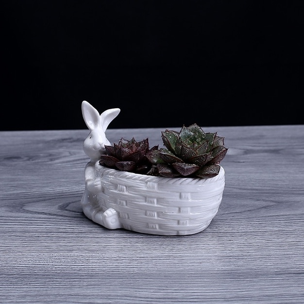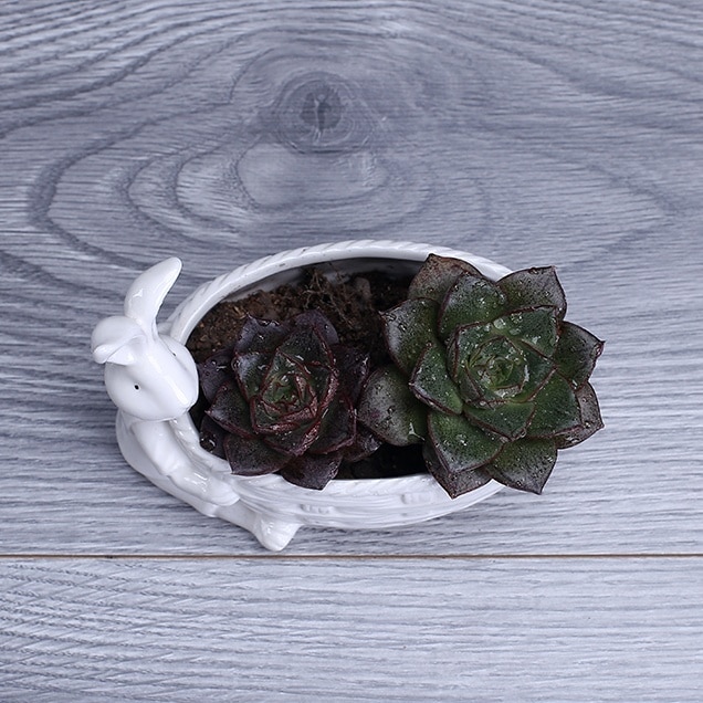 Porcelán Nyuszi Figura Pozsgás Növényi Edény Dekoratív Asztali Kerámia Nyúl
