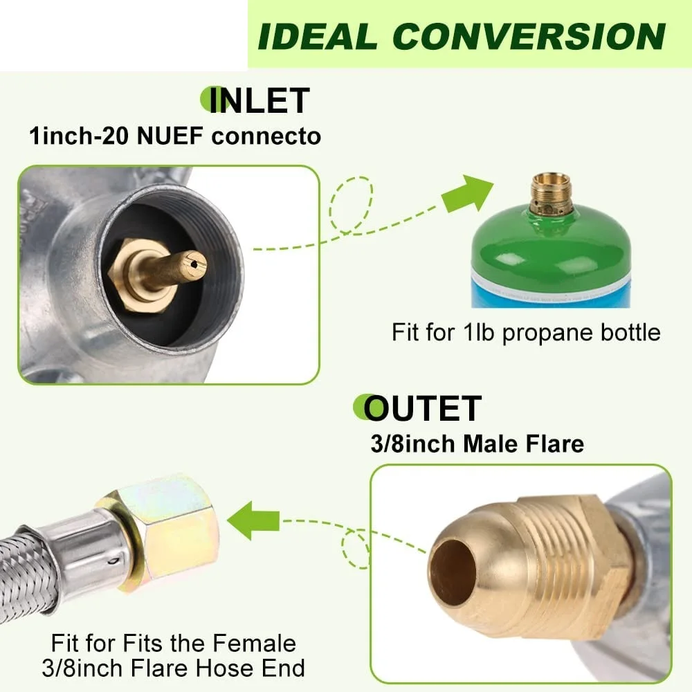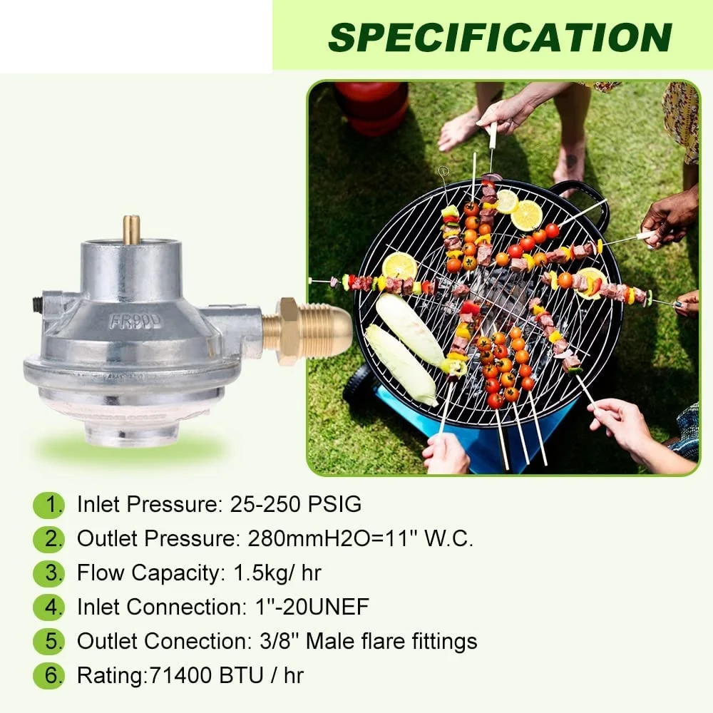 Propánszabályozó Szelep, Alacsony Nyomású Szabályozó, 3/8 Hüvelykes Férfi Fáklyával, 1 Font Standard Propántartályhoz És Hosszabbító Tömlőhöz