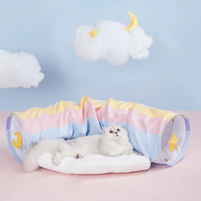 Rainbow Macska Alagút Macskaágy Játék Vicces Kedvtelésből Tartott 2 Játékcsövek Gömbök Összecsukható Cica Játékok Kiskutya Vadászgörények Nyúl Play Dog Alagút Csövek