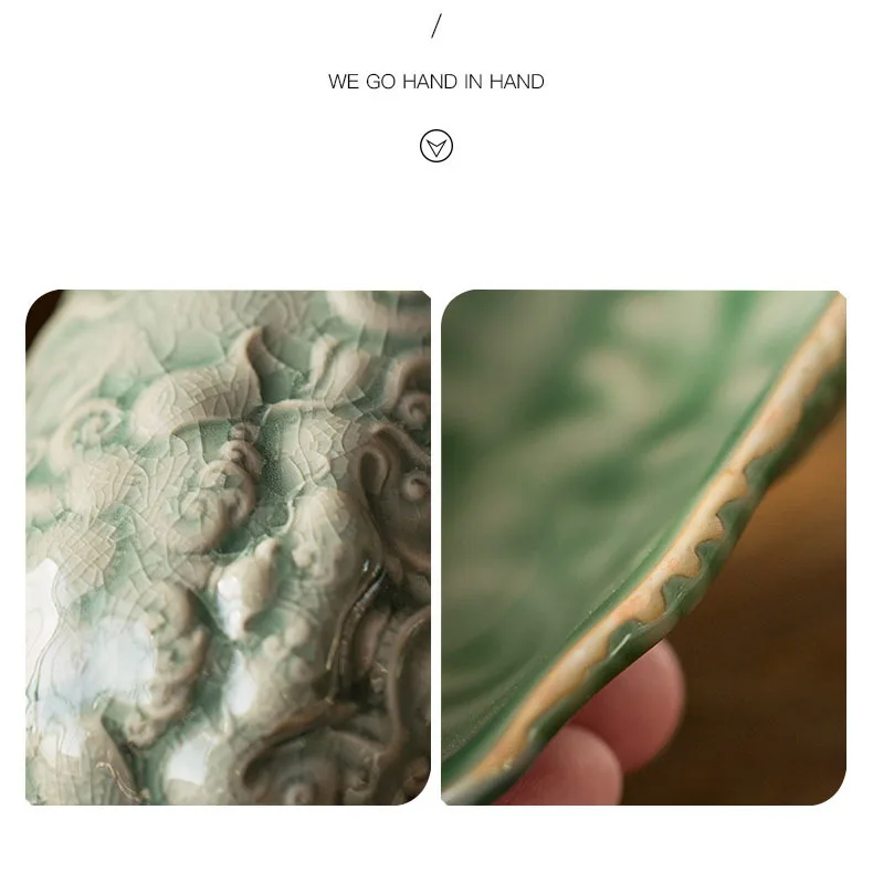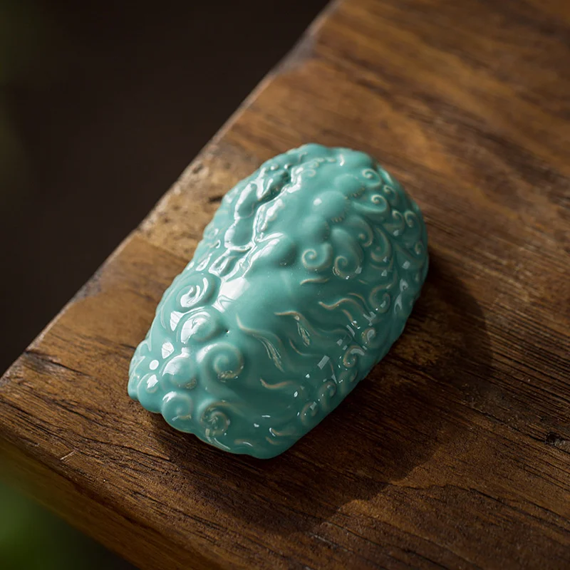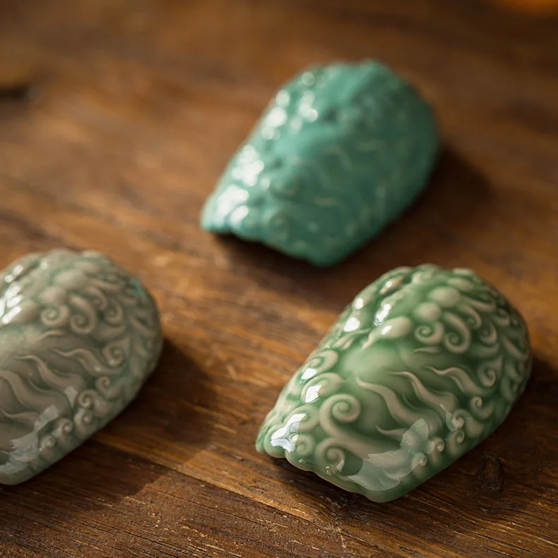 Retro Borne Glaze Kerámia Tea Lapáttal Kínai Megkönnyebbülés Tang Oroszlán Kanál Kung Fu Chahe Ébresztő Edények Ceremónia
