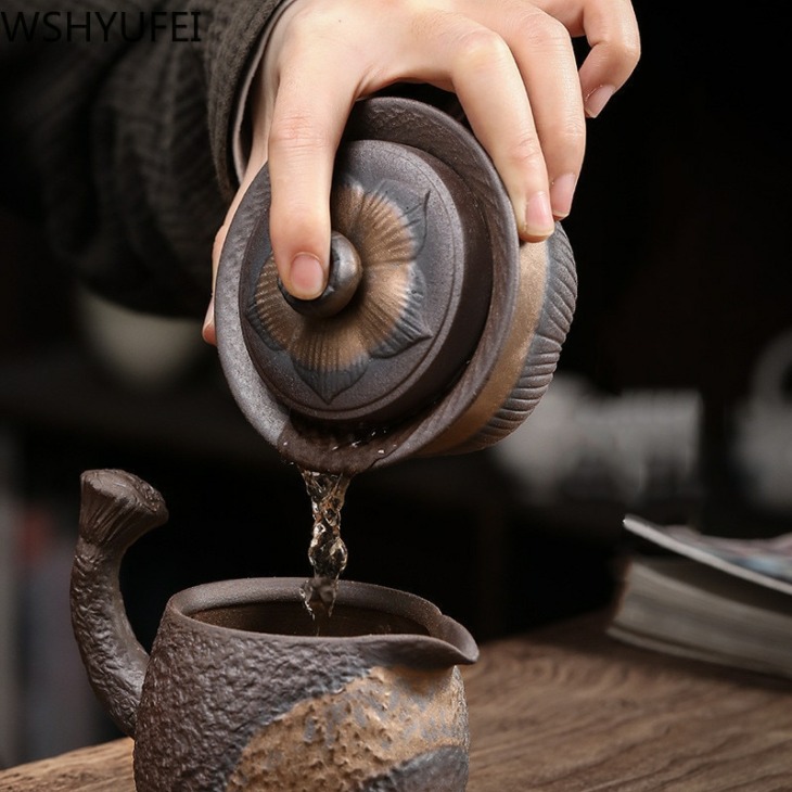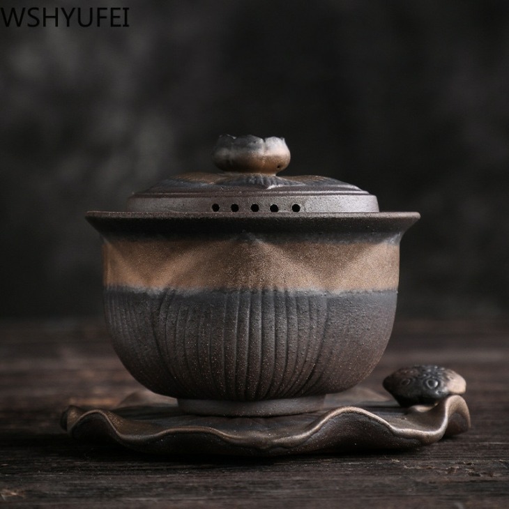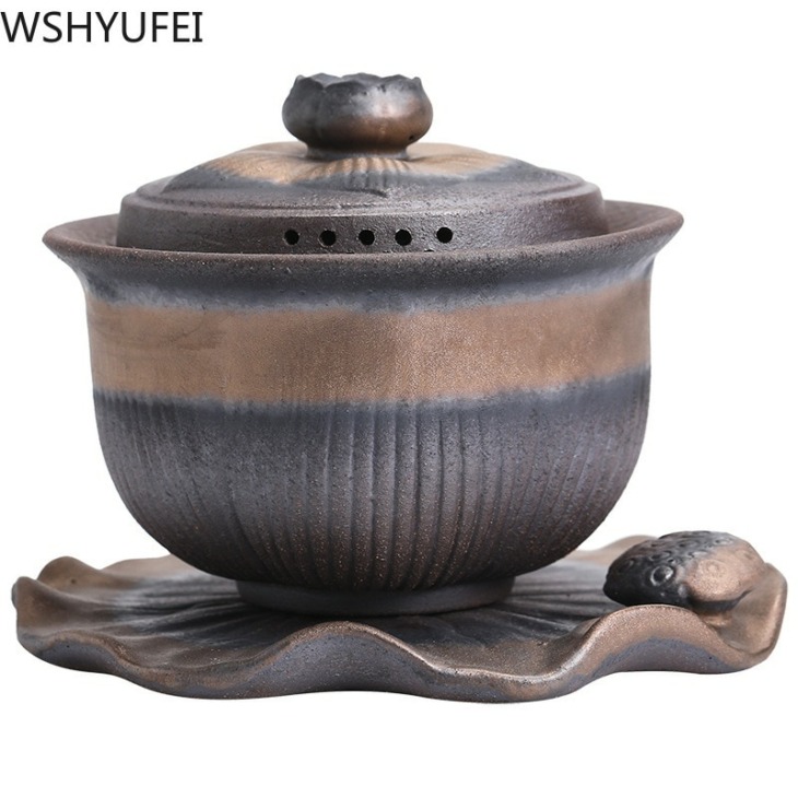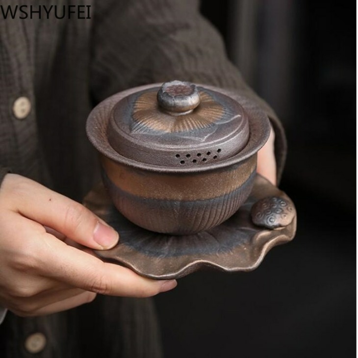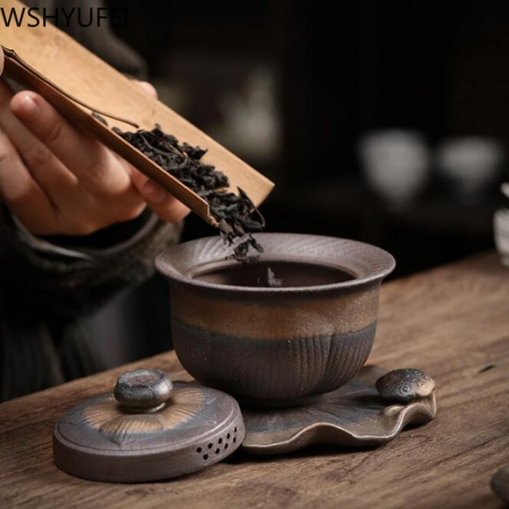 Retro Ceramic Gaiwan Tea Cup Kézzel Készített Tureen Lid Bowl Kínai Tea Tál Csésze Jingdezhen Teakészlet Italszarvú Személyi Csésze
