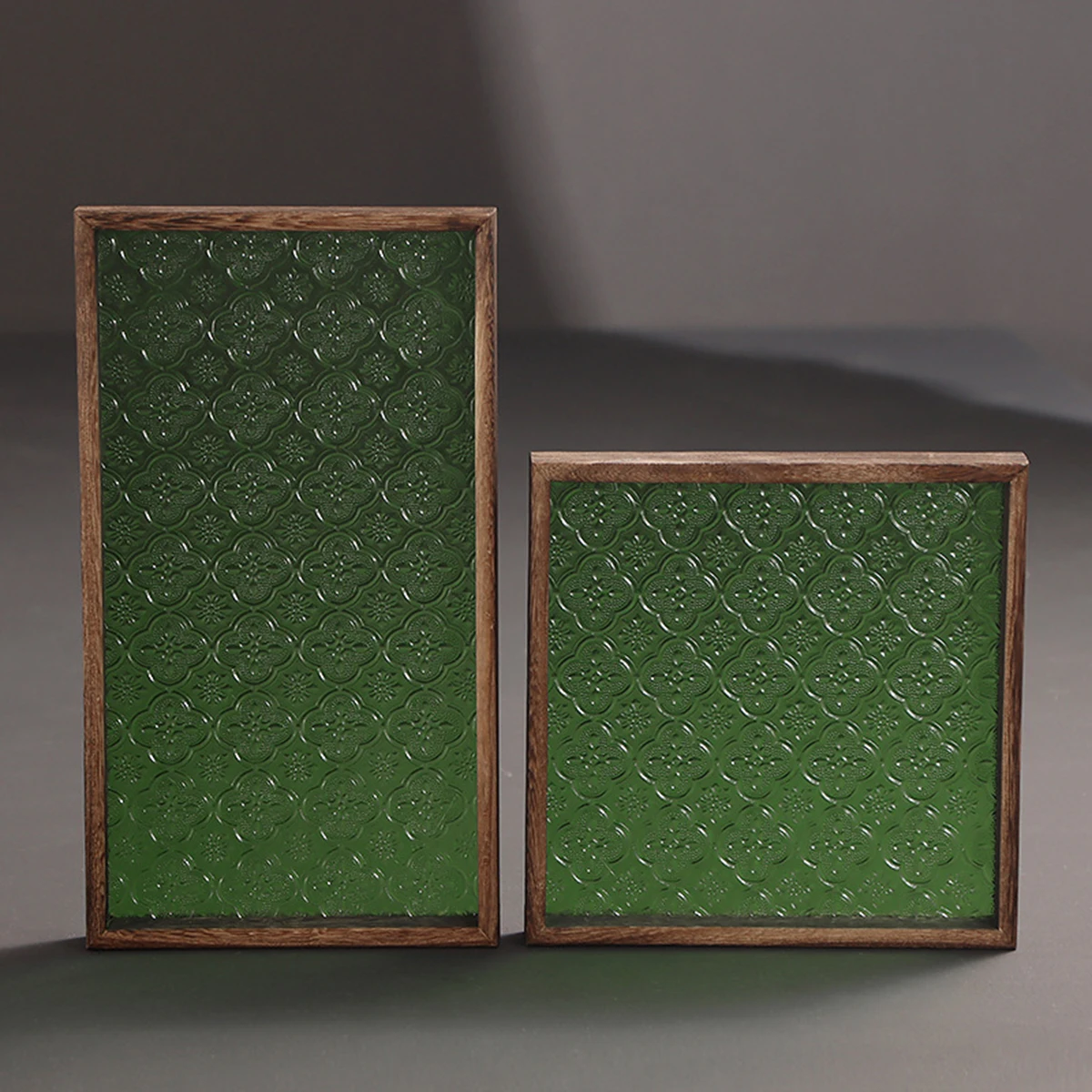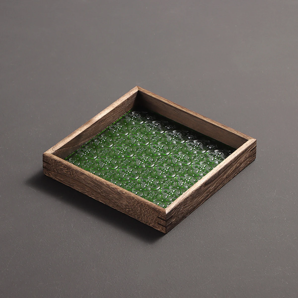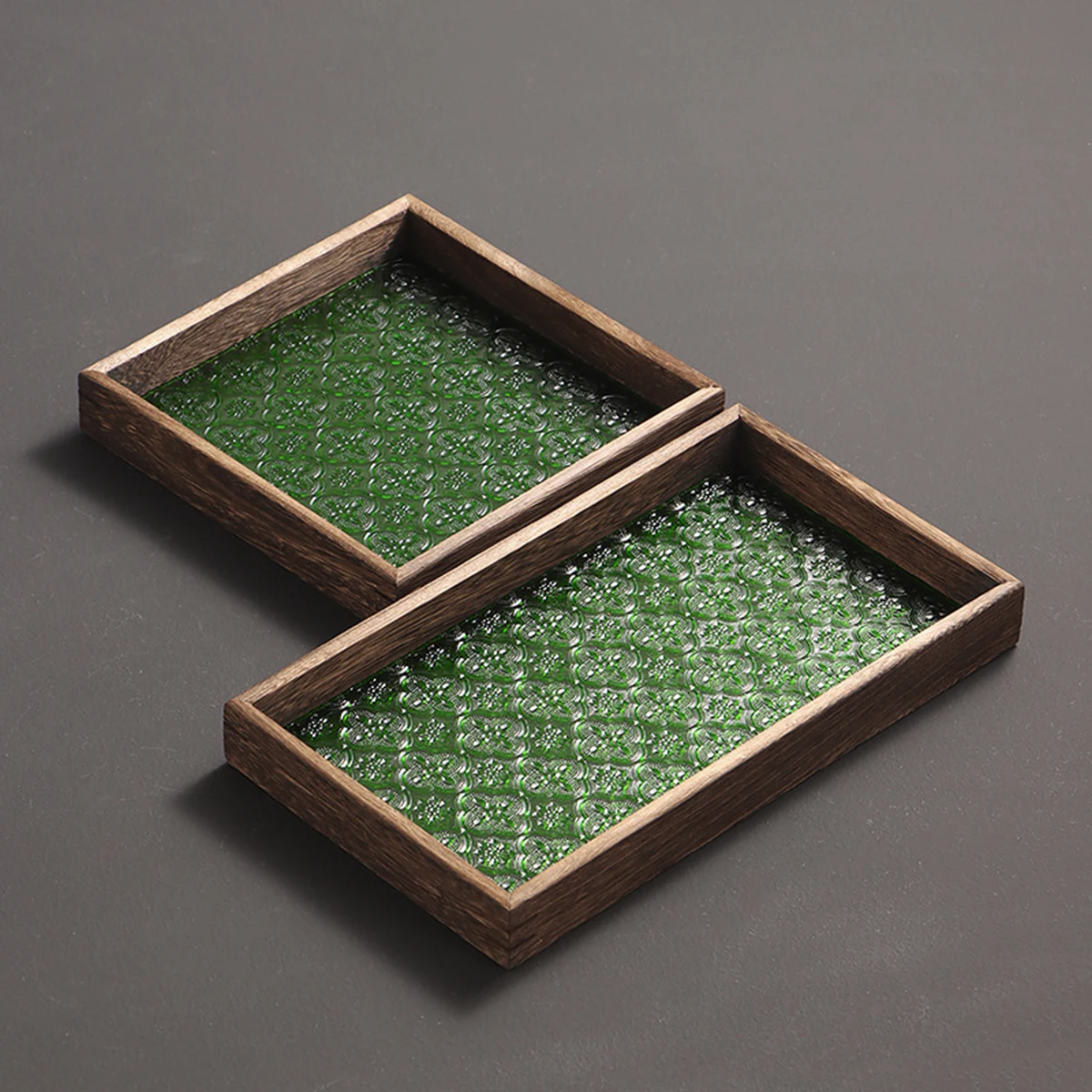 Retro Japán Stílusú Begonia Dombornyomott Üveg Tálca Háztartás Téglalap Alakú Fa Tároló