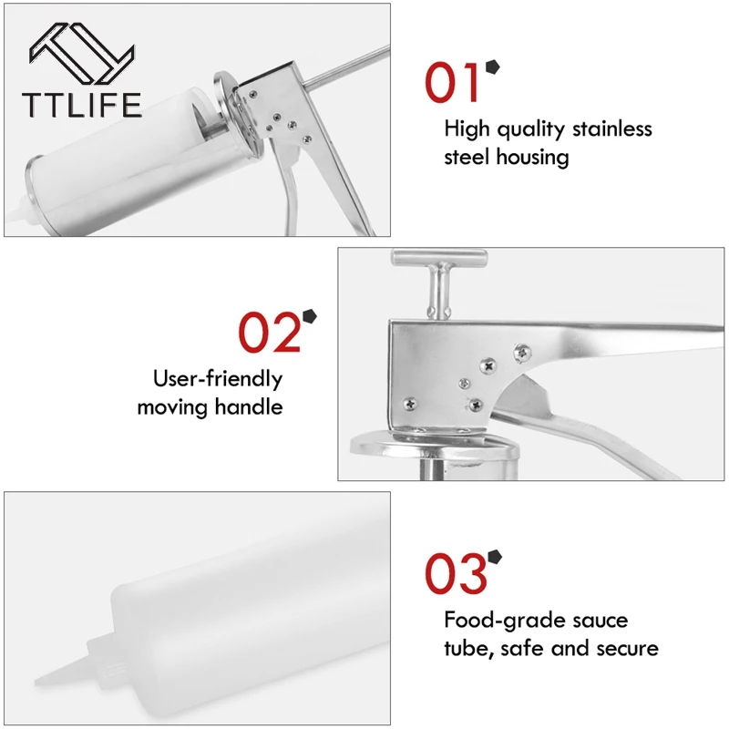 Rozsdamentes Acél Burger Szósz Pisztoly Saláta Öltöző Adagoló 10 G 20 G Hamburger Lekvár Töltő Palack Squeezer Hamburgerek Bolt Felszerelés