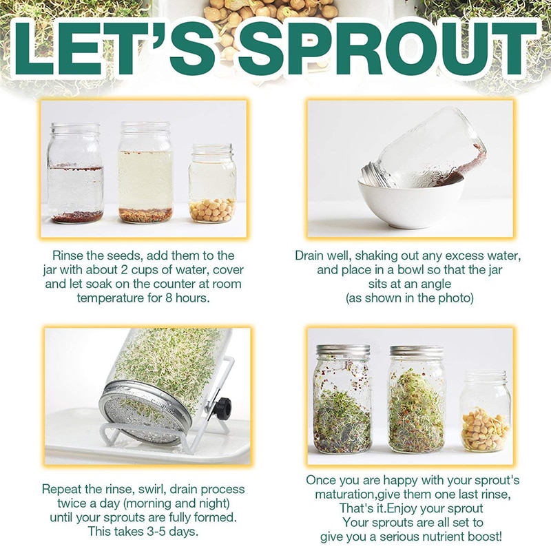 Rozsdamentes Acél Csírázó Korsó Fedelek Háló Szűrő Vetőmag Fedél Készlet Széles