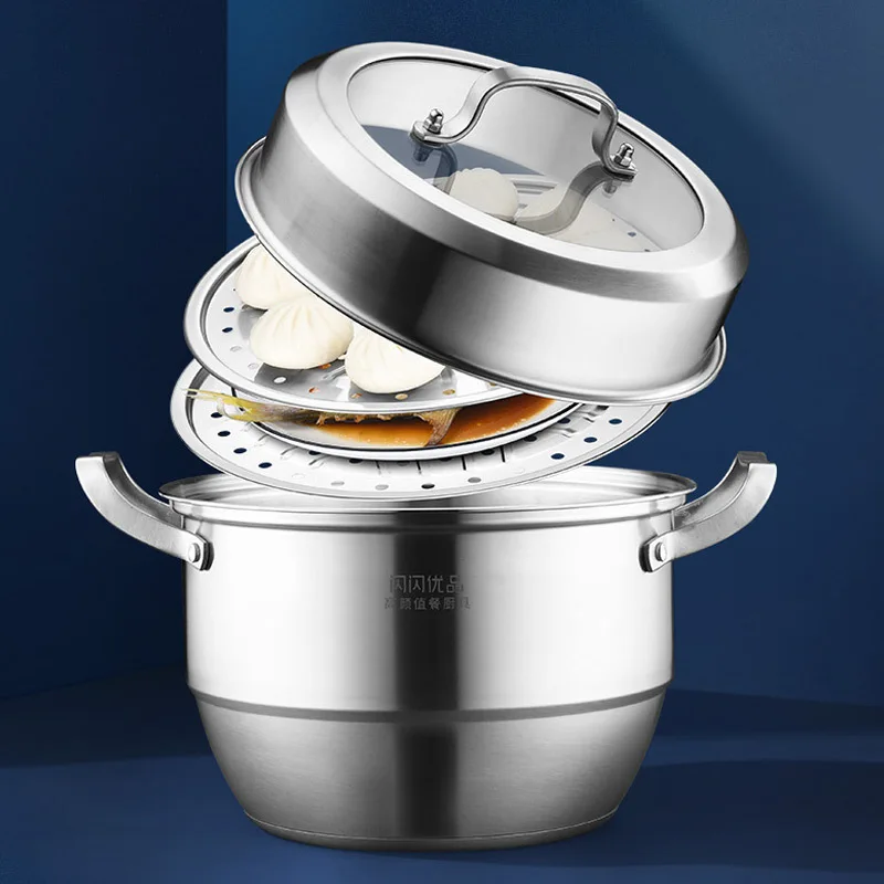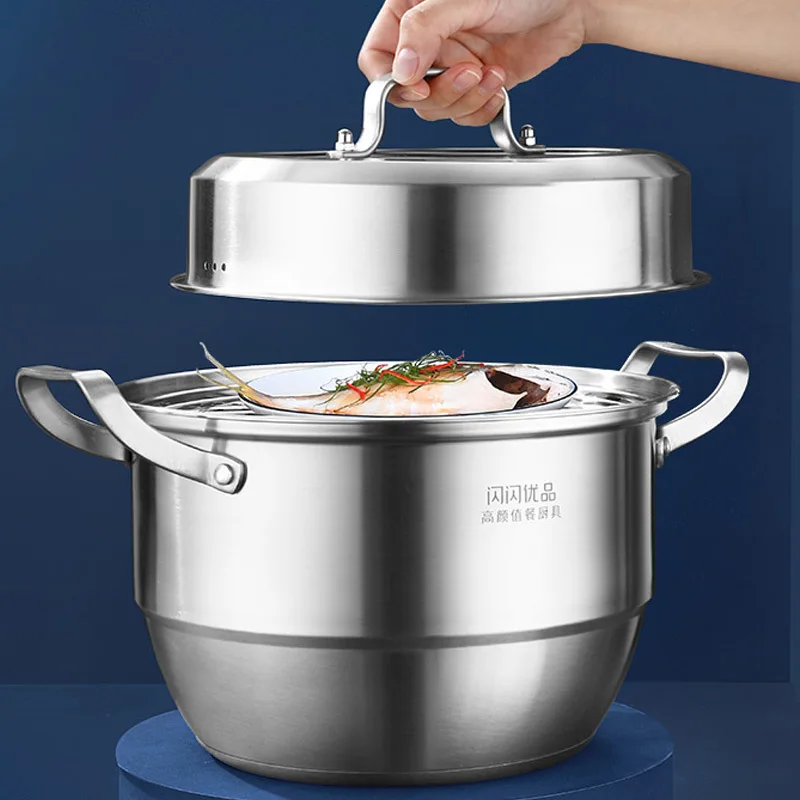 Rozsdamentes Acél Gőzös Tompa Összegű Edények Halak Állvány Többrétegű Ételek Megvastagodott Edény