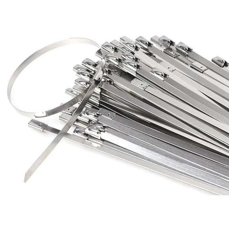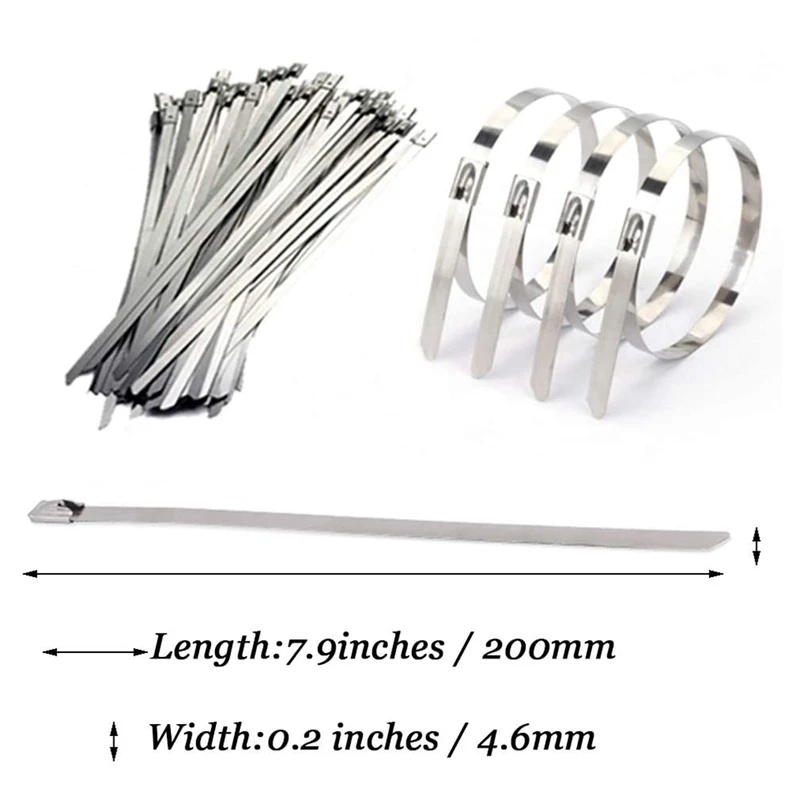 Rozsdamentes Acél Kábelkötegek, 100 Db 7,9 Hüvelyk Nagy Teherbírású Önzáró Kábel Cipzárak, Fém Kipufogócsomagoló Reteszelő Kapcsolatok