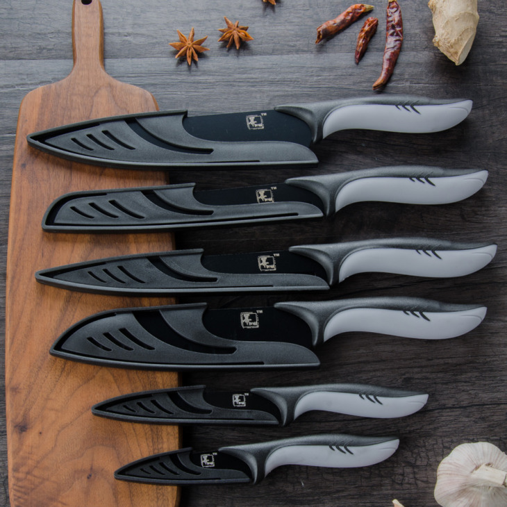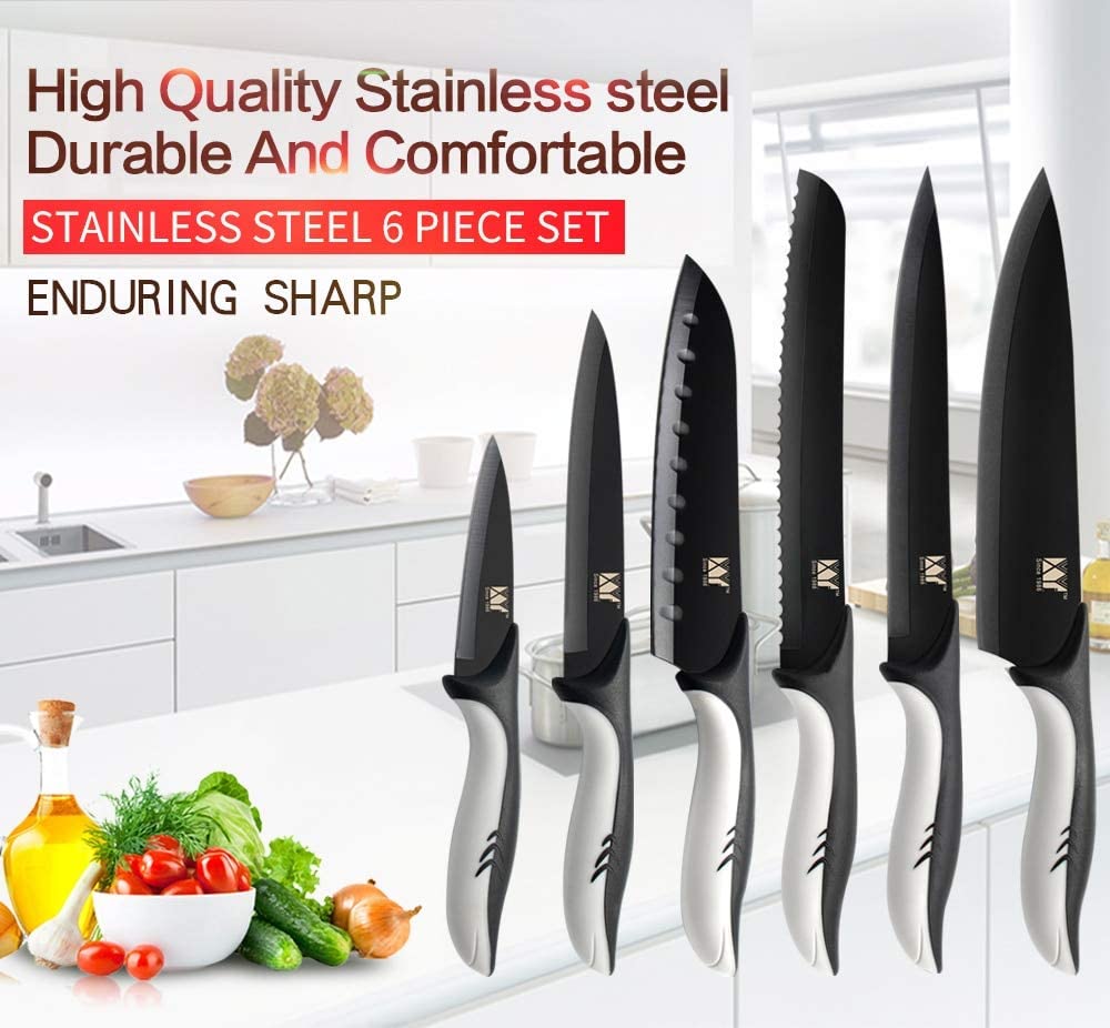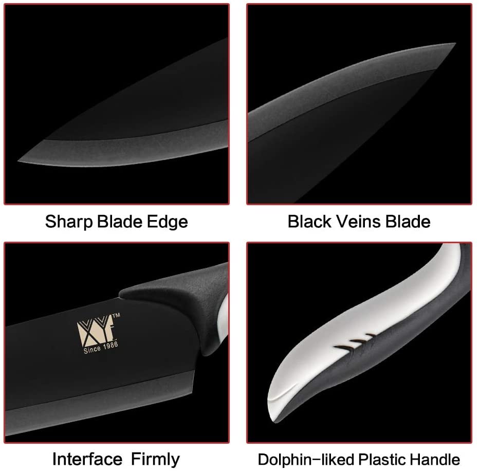 Rozsdamentes Acél Konyhai Kések Fekete Penge Séf Kés 3,5 5 7 8 Hüvelykes Paring Segédprogram Japán Santoku Faragott Kenyérkés Készlet