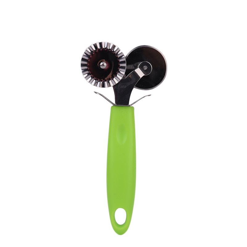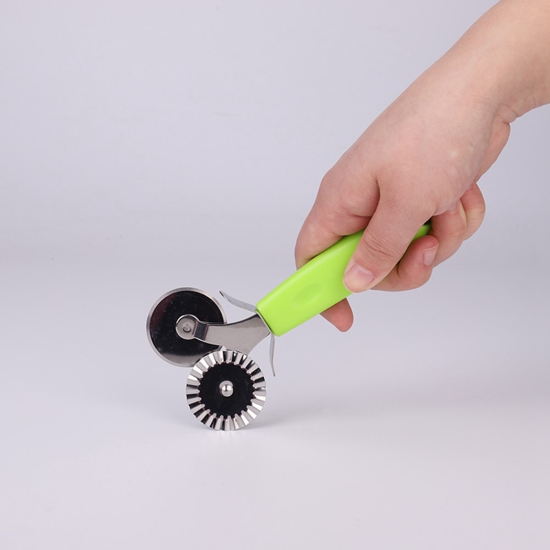 Rozsdamentes Acél Pizza Vágó Kettős Görgős Kés Kő Tészta Krimpelő Konyhai Sütőeszközök Eszköz