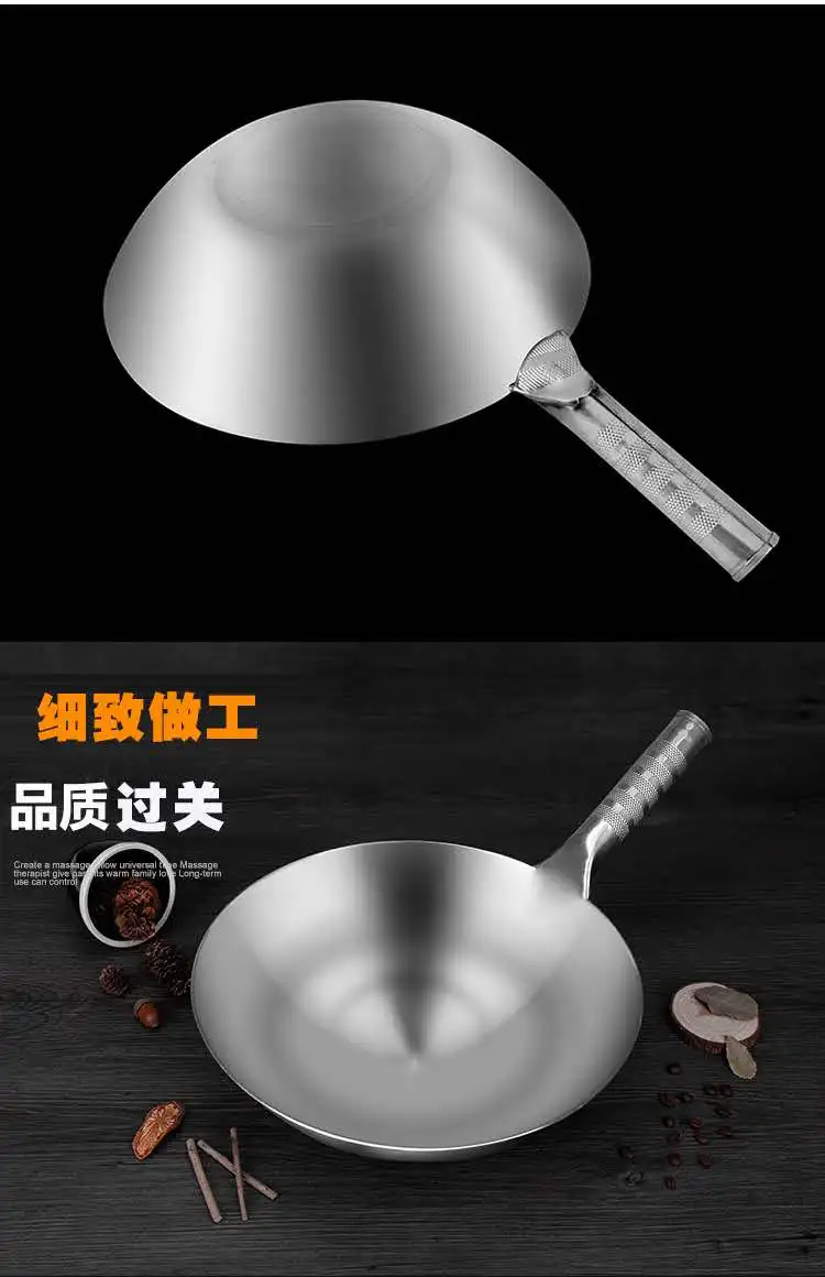 Rozsdamentes Acél Wok Kiváló Minőségű Kínai Kézzel Készített Wok Hagyományos Nem Bot Rozsda Gáz Wok Főzőlap Főzés 1,8 Mm Vastag