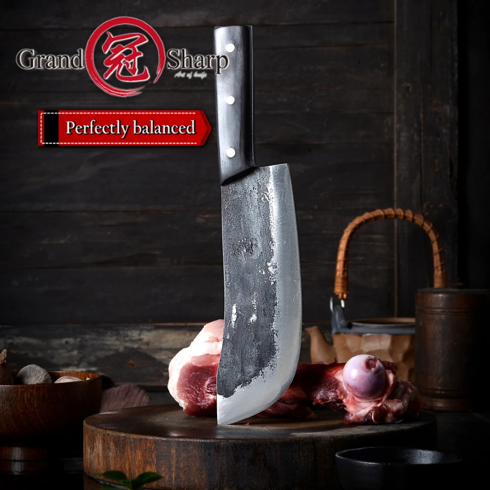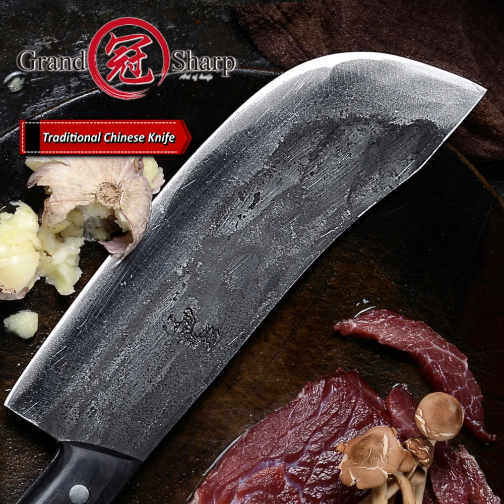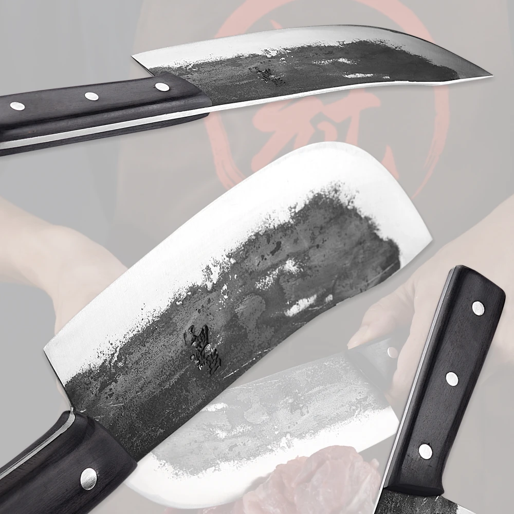 Séf Cleaver Kést Helikoper Szeletelő Főzőszerszámok Kézzel Készített Konyhai Kések Hagyományos Kínai Stílusú Pro Éles Levágó Kés