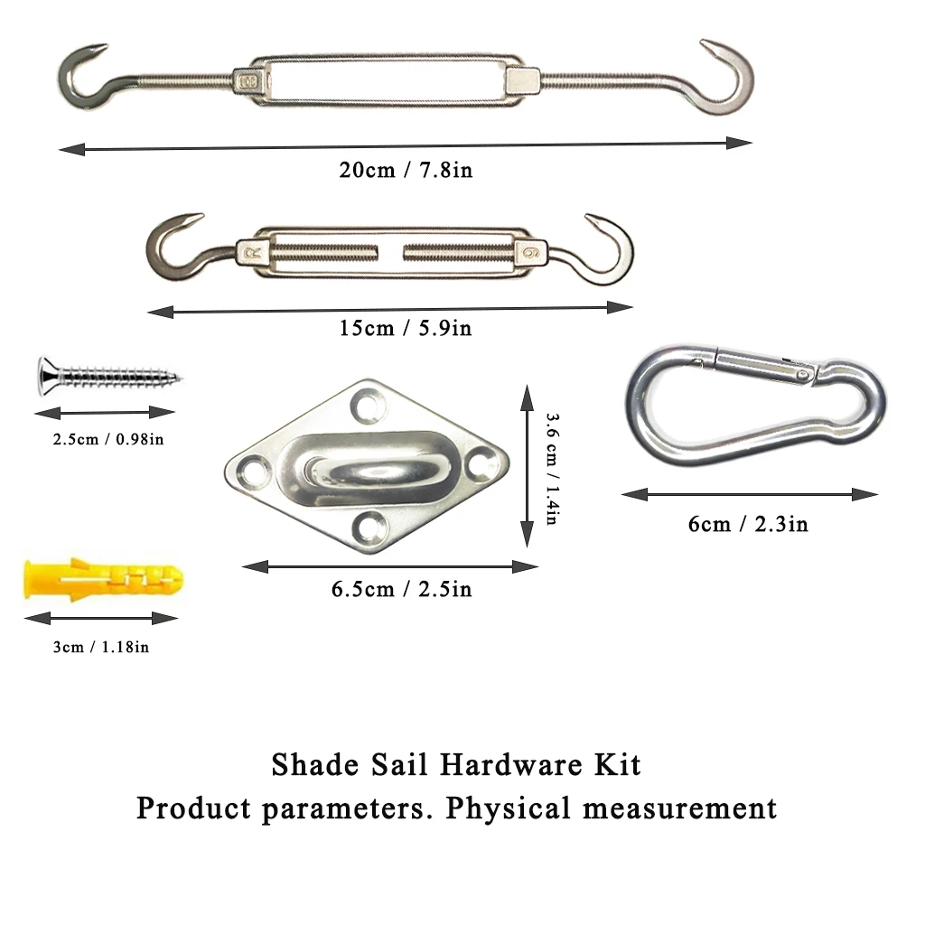 Shade Sail Hardware Kit, 304 Rozsdamentes Acél Készlet Négyzet Alakú/Téglalap Árnyékos Vitorla, Rögzítőelemes Felszerelés A Kerti Medencéhez