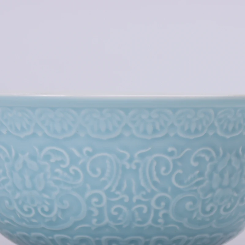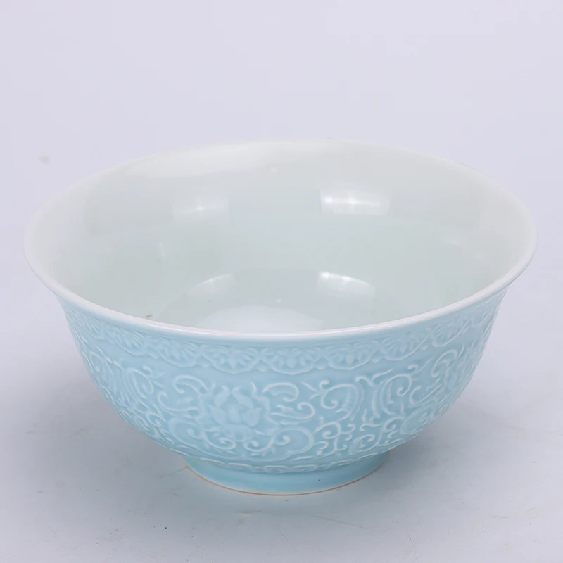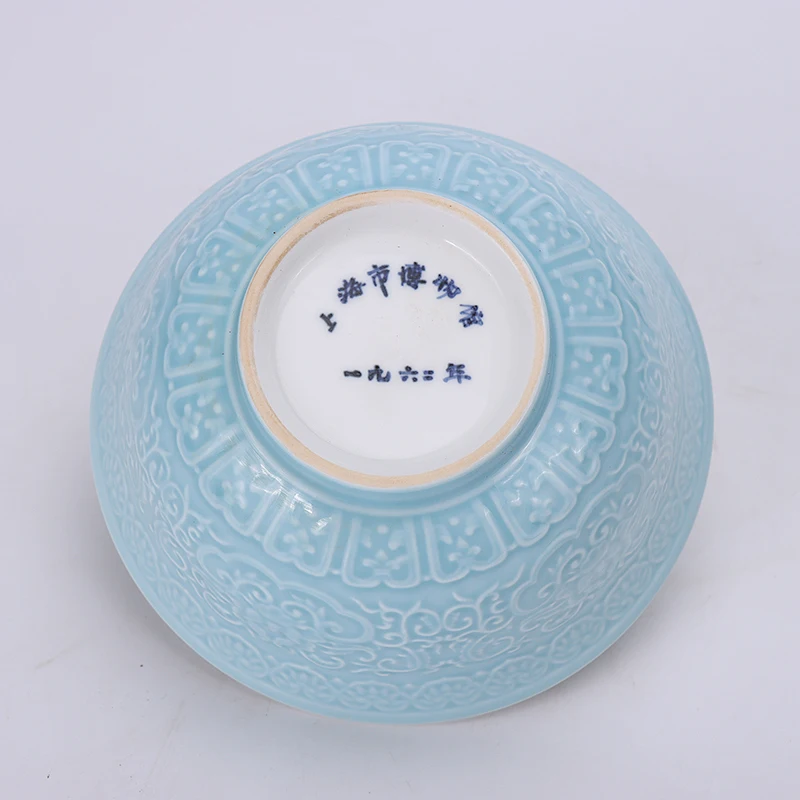 Shanghai Múzeum 1962 Sky Blue Glaze Domage Tangled Lotus Pattern Nagy Tál Porcelán Egyedi Díszek