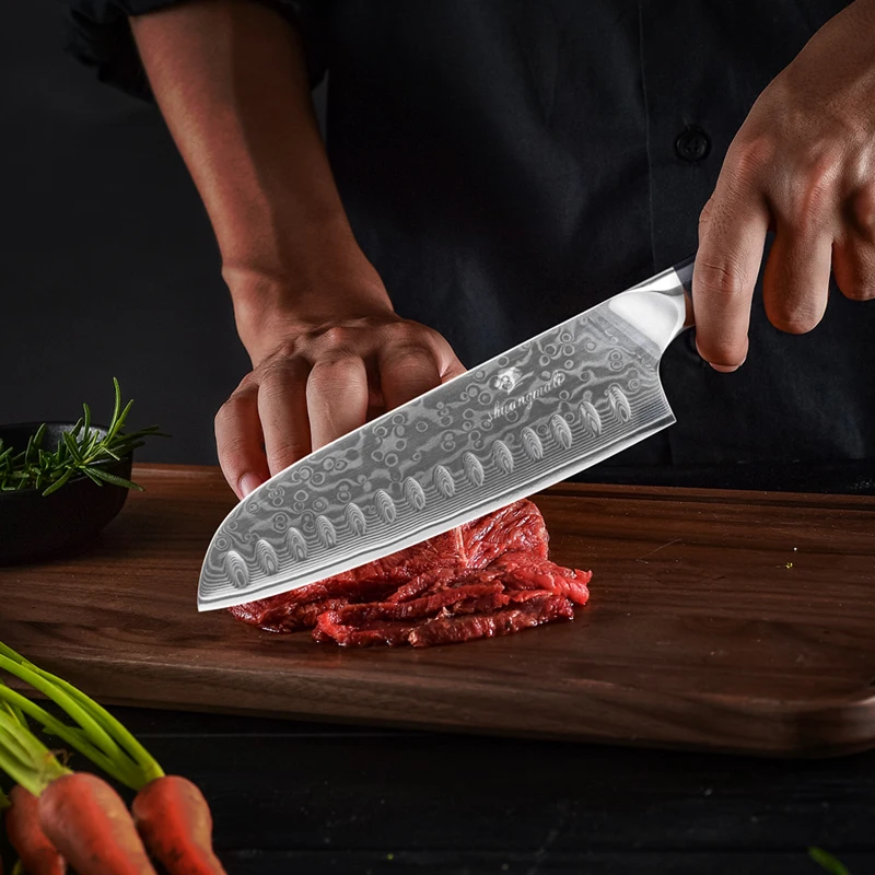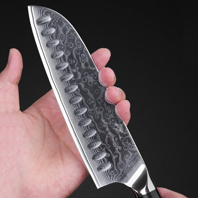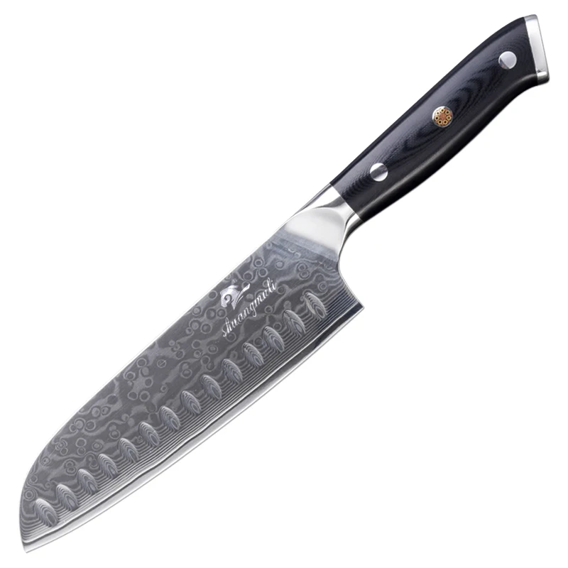 Shuangmali 7 Hüvelykes Santoku Kések 67 Réteg Damascus Acélszakács Konyhai Kés Élek, Amelyek Hús Gyümölcs Zöldségekkel Foglalkoznak
