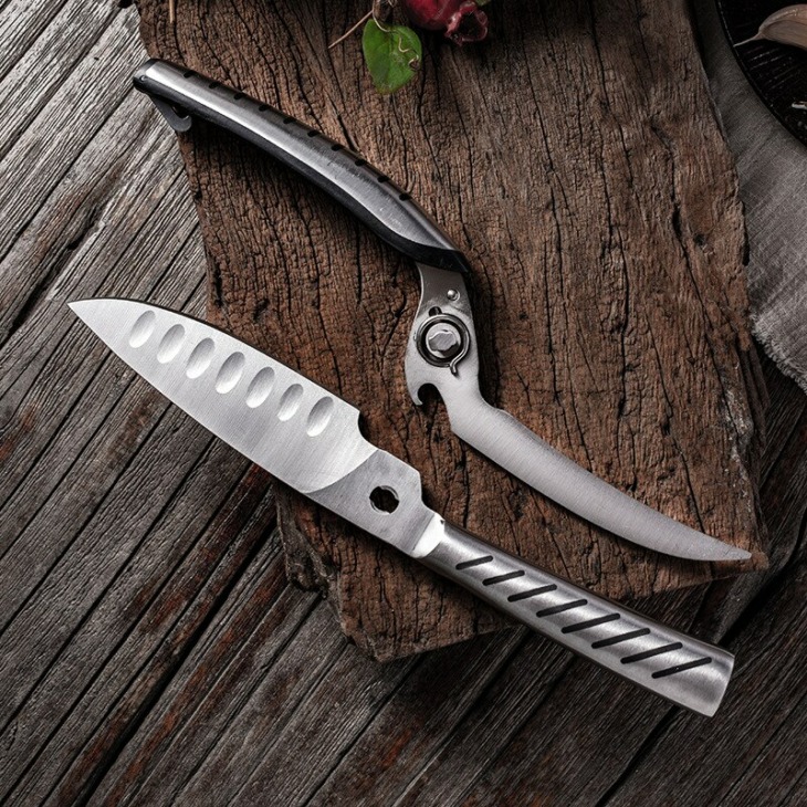 Shuoji Multifunkcionális Konyhai Olló Kések Levehető Rozsdamentes Acél Olló Főzés Csirkecsontok Erős Olló Kés