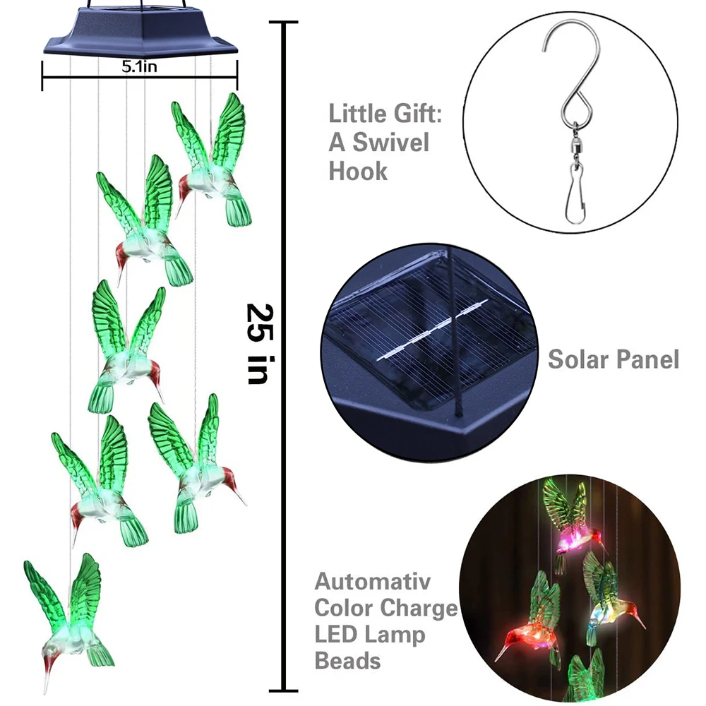Solar Light Outdoor Powered Led Chime Ip65 Vízálló Pillangó Kolibri Gyep Lámpák A Kerti Udvar Dekorációjához