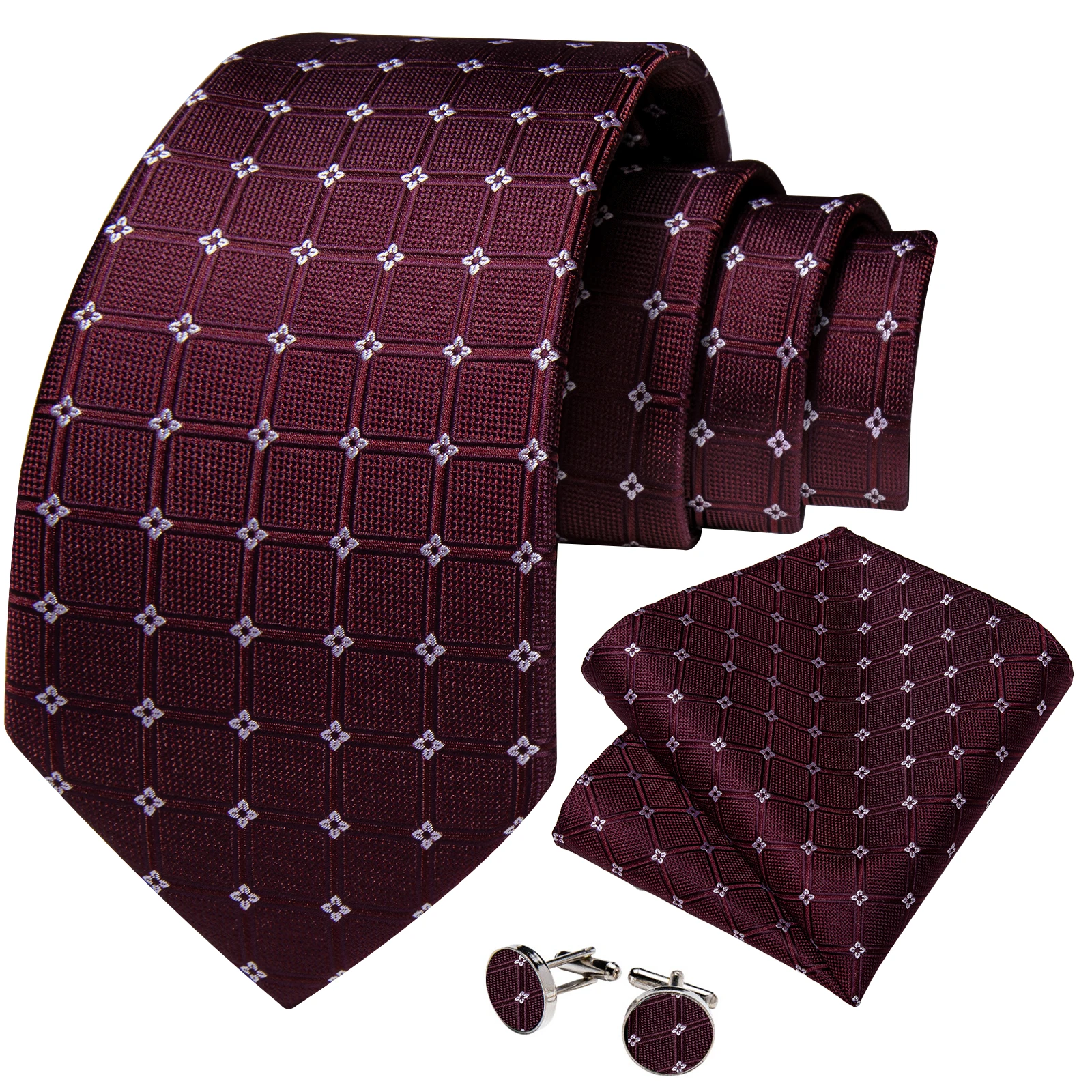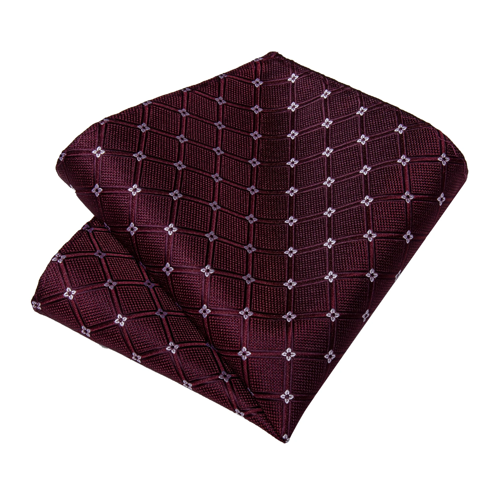 Sötétvörös Kockás Selyemkötegek Férfiaknak Klasszikus 8 Cm -Es Üzleti Esküvői Kiegészítők Zseb Négyzet Alakú Mandzsettagombok Ajándék Dibangu Csepphajó