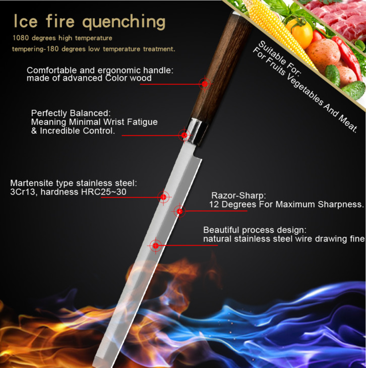 Sowoll 9 ‘ Rozsdamentes Acélból Készült Szeletelő Kés Sashimi Sushi Szerszám Görögdinnye Burkolat Fa Fogantyúvágó