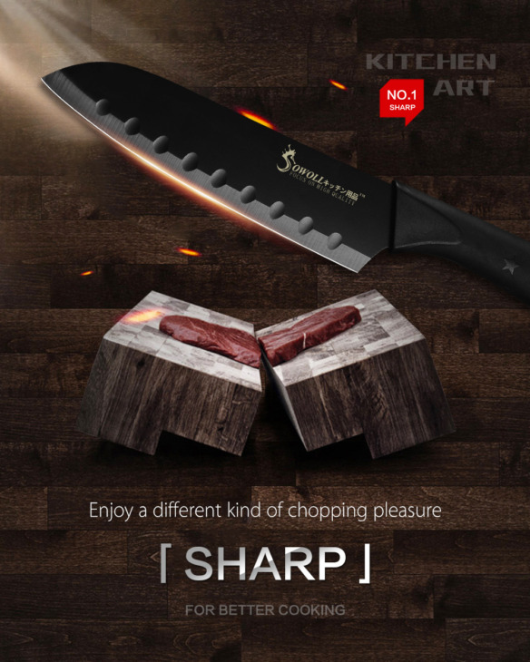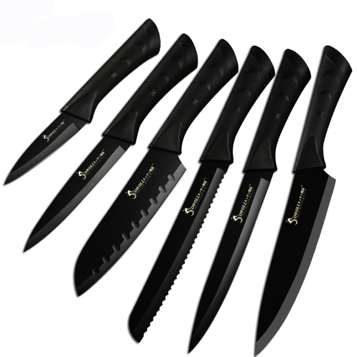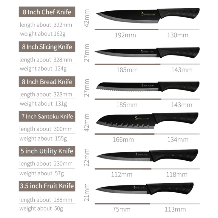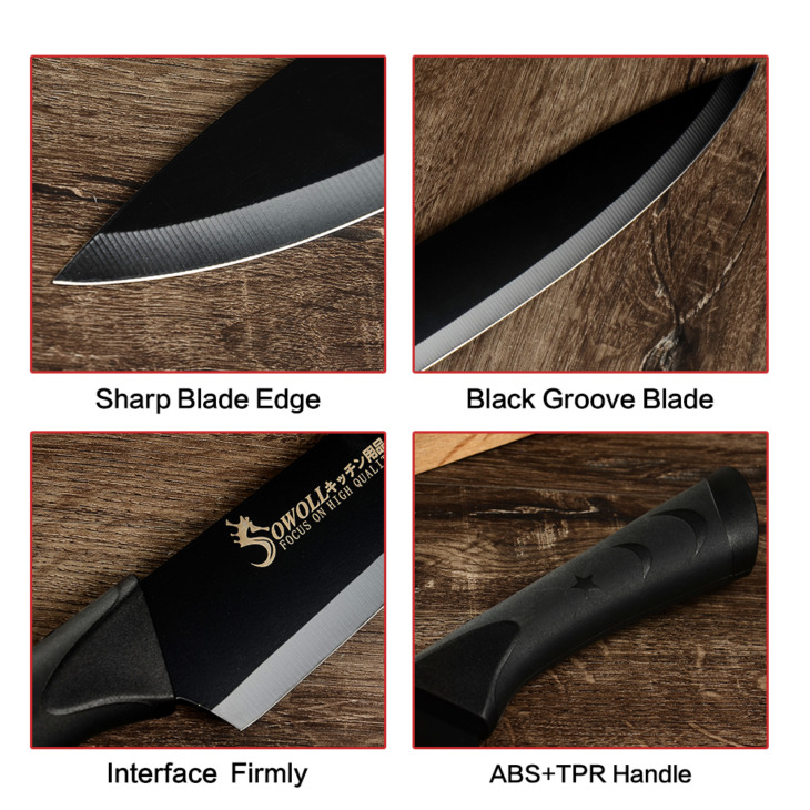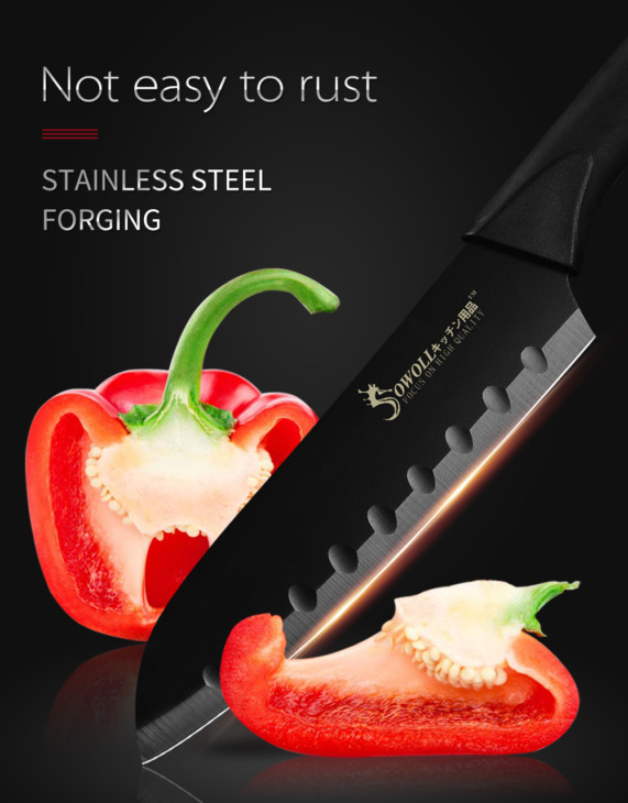 Sowoll Fekete Rozsdamentes Acél Kések 3,5 ” 5 ” 7 ” 8 ” Paring Utility Santoku Szeletelő Kenyérsütő Konyhai Kés Hüvelyekkel
