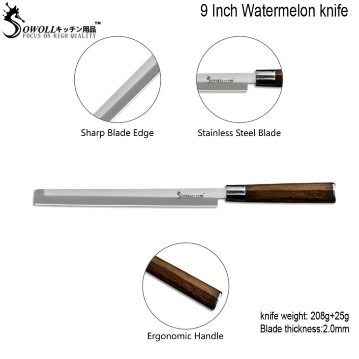 Sowoll Rozsdamentes Acél 9 Hüvelykes Sushi Séf Kés Japán Sashimi Konyha Lazac Kések Yanagiba Görögdinnye Késsel