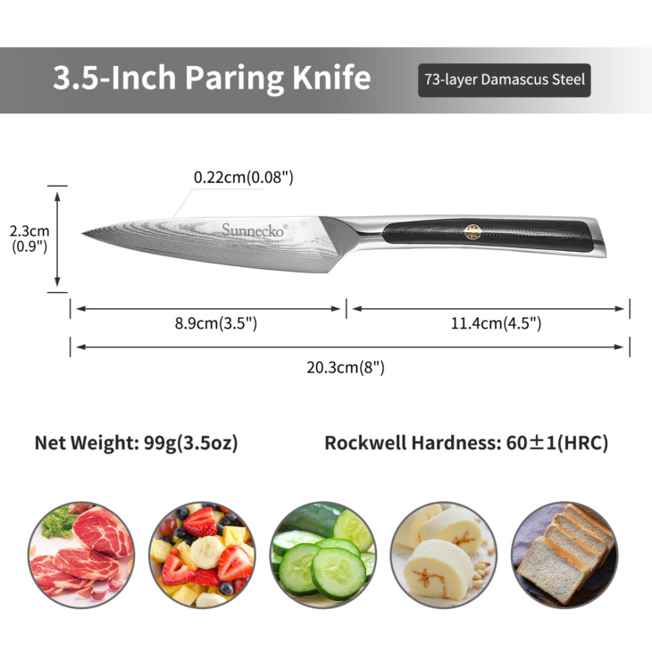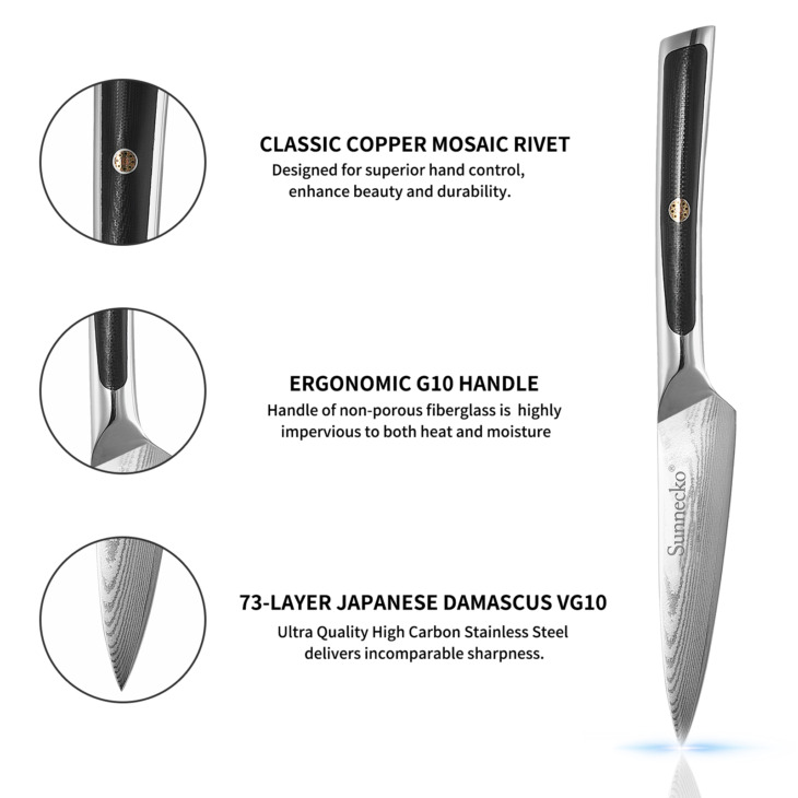 Sunnecko 3.5 „-Es Damascus Acél Penge Japán Vg10 Core Botor Sharp G10 Fogantyúk Kések Gyümölcshéj