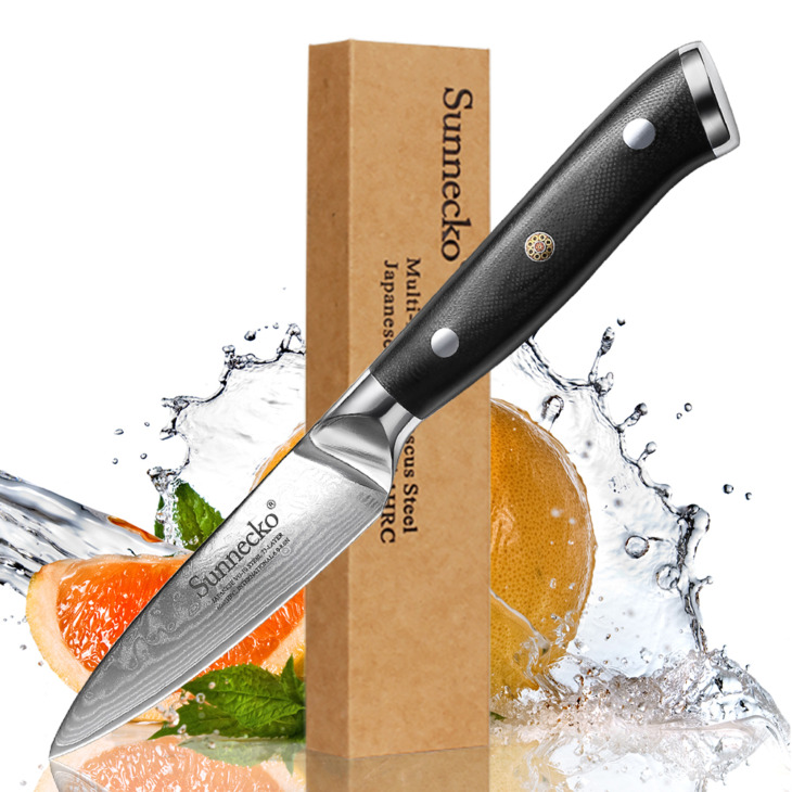 Sunnecko 3,5 „Hüvelykes Paring Konyhai Szakács Kés Japán Damaszkusz Vg10 Acél Borotva Éles Penge G10 Göndör Séf Gyümölcsvágó Szerszámok