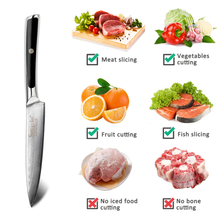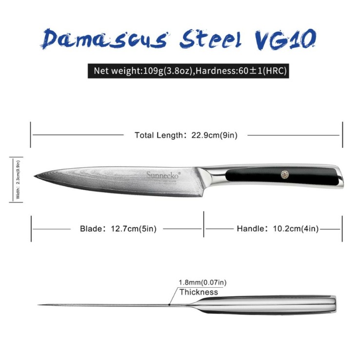 Sunnecko 5 Hüvelykes Közmű Kés Damaszkusz Japán Vg10 Core Steel Penge Konyha Kések G10 Kezelése Éles Gyümölcsvágó Szakács Kés