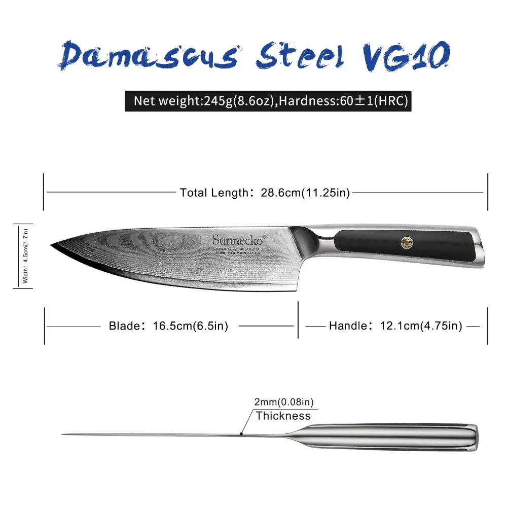 Sunnecko 6.5 „Damaszkusz Acélszakács Kés Japán Vg10 Core Blade Botor Sharp Kitchen G10 Fogantyú Chef Hús Szeletelés Vágás