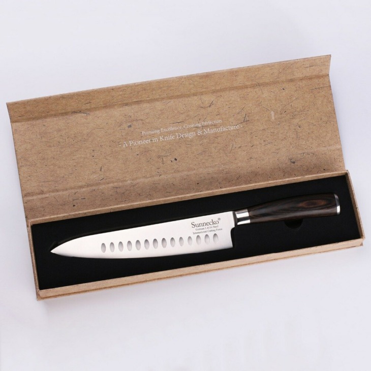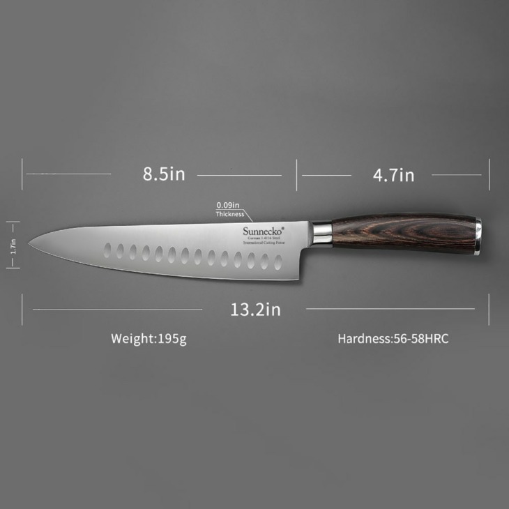 Sunnecko 8.5 „Séf Santoku Segédkés Séf Szeletelő Konyhai Kések Német 1.4116 Acél Penge Színű Fa Fogantyú Ajándék