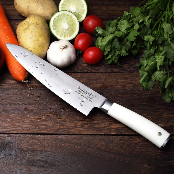 Sunnecko 8 „Séf Kés Biztonságos Ujjkezelővel, Német 1.4116 Acél Penge Abs Fogus Ujjvédő Karácsonyi Ajándék
