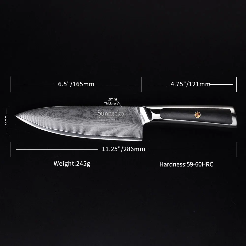 Sunnecko Forró 6,5 „Damaszkusz Acélszakács Kés Japán Vg10 Core Botor Sharp Blade Fuffisite G10 Konyhai A Húshoz