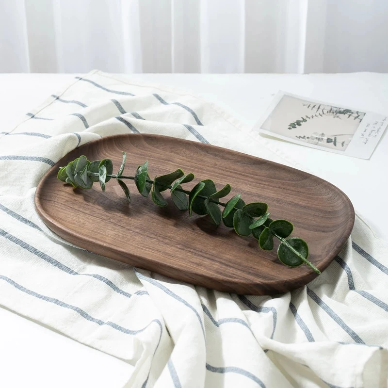 Szabálytalan Ovális Fekete Dió Fa Ételek Gyümölcs Cukorka Sushi Csészealj Desszert Vacsora Tányér Tárolóasztal Készlet Tálca