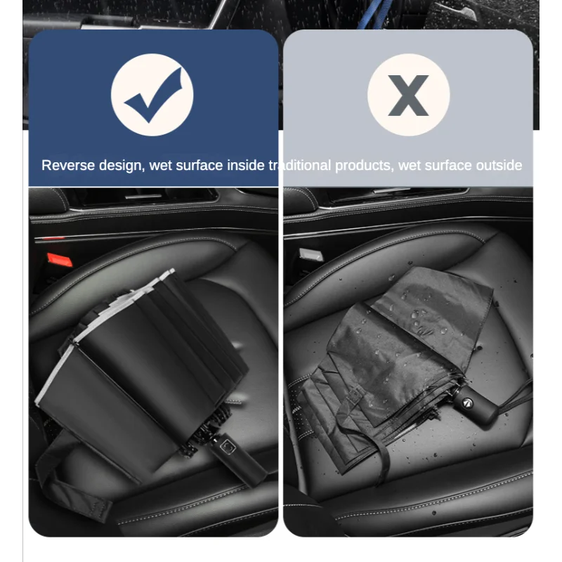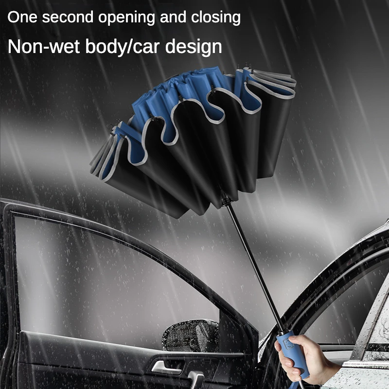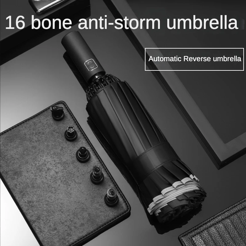 Szélálló 16 Csont Teljesen Automatikus Hajtogató Fordított Esernyő Üzleti Autó Esőálló Nagy Vinil Napvédő Esernyők
