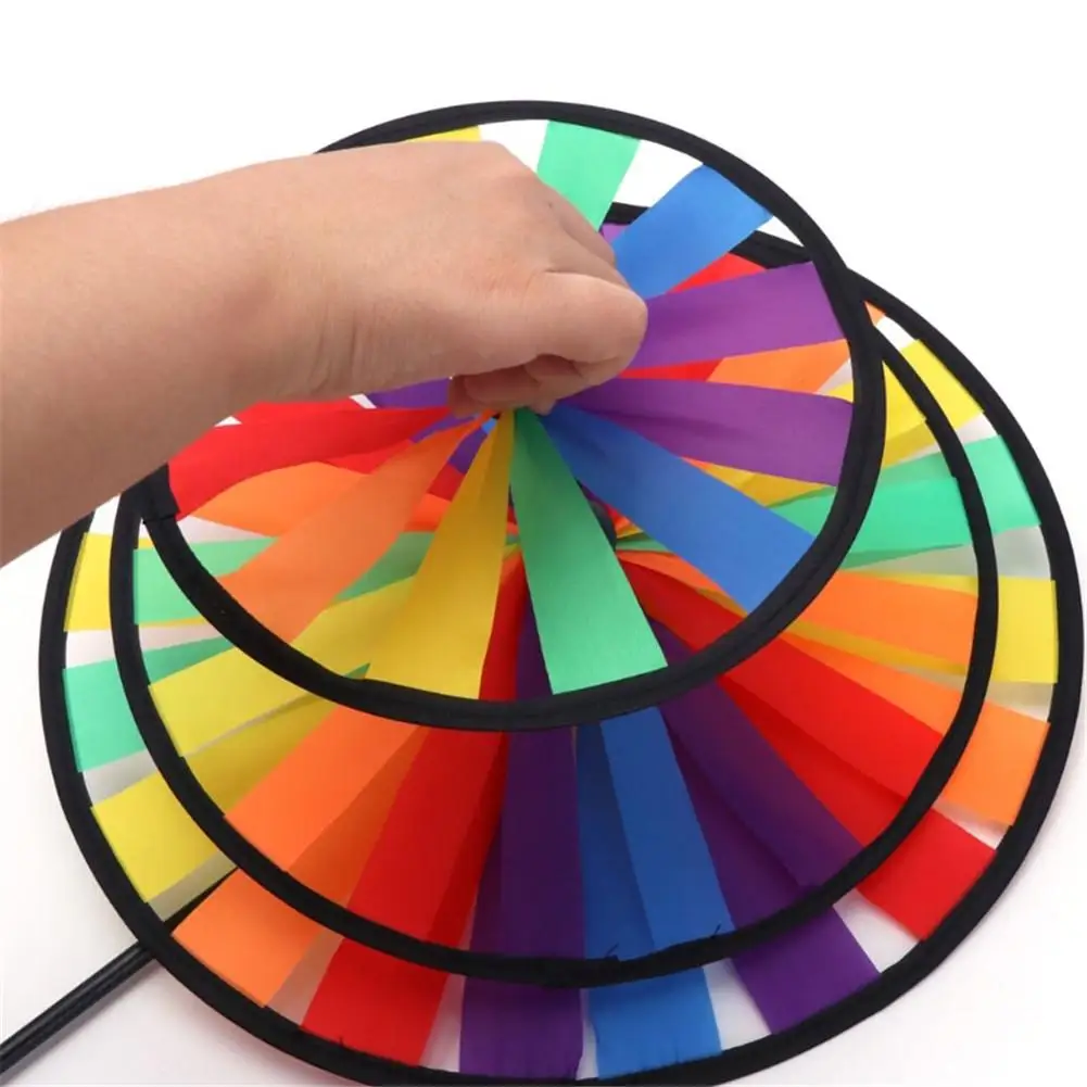 Szélmalom Szivárvány Színes Hármas Kerék Fonó Kerek Szél Kerti Dekoráció Gyep Udvari Farm Udvar