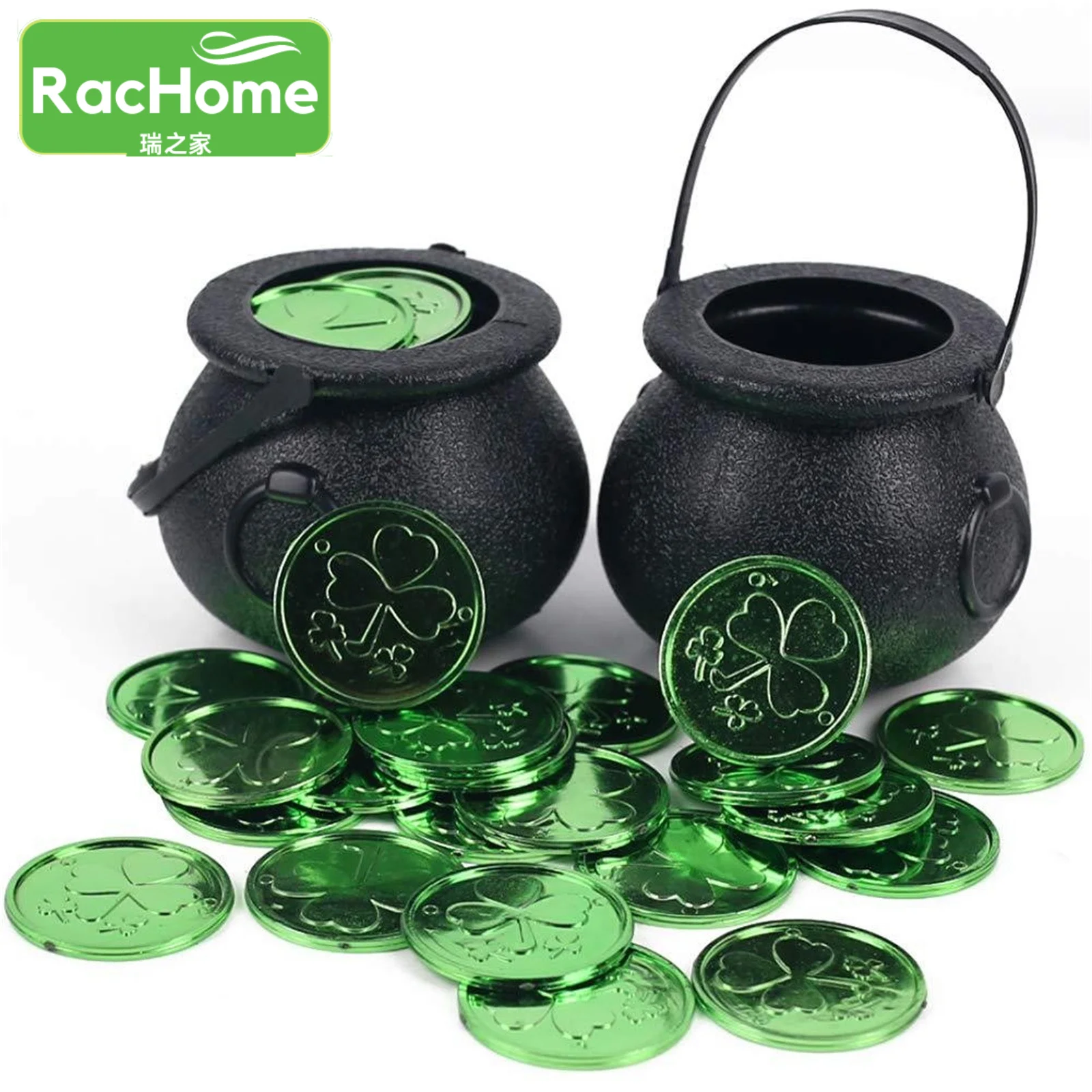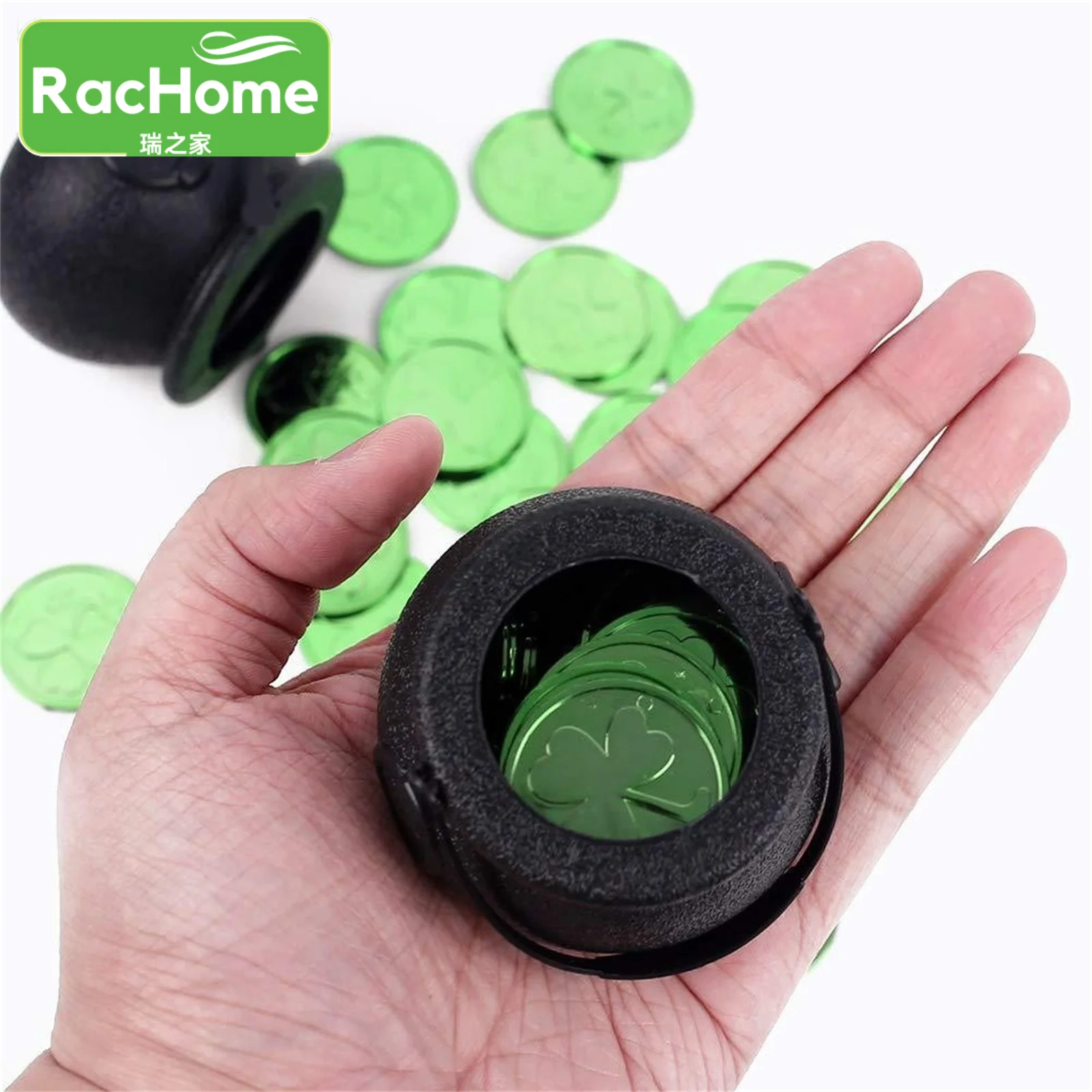 Szent Patrik Szerencsés Shamrock Műanyag Érmék + Cukorka Kannák Ír Zöld Lóhere Dekoráció Kincsvadászat Játékszerek 25Pcs