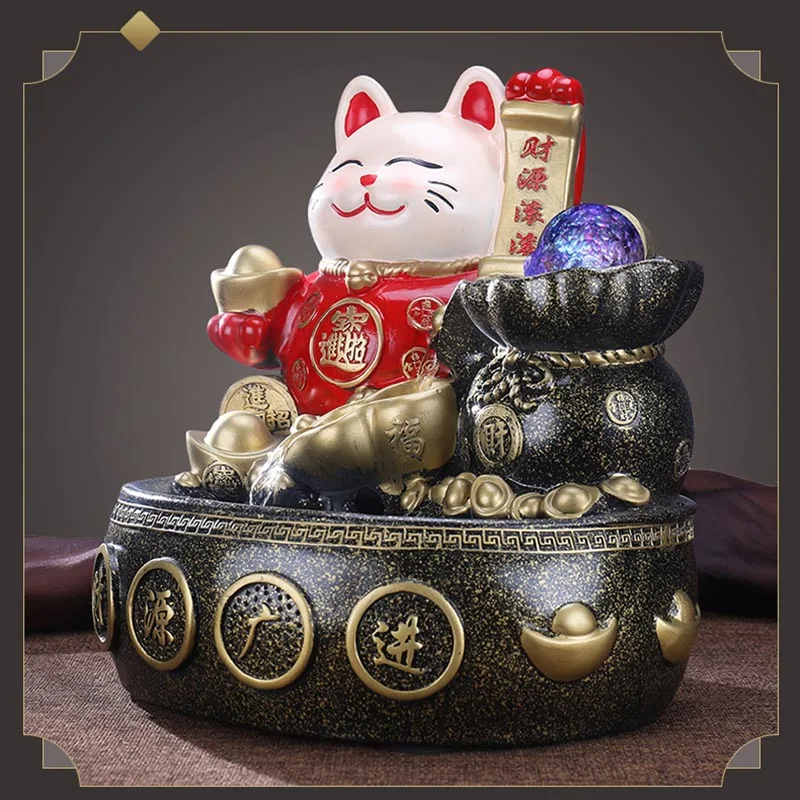 Szerencsés Macska Vízesés Díszek Feng Shui Beltéri Szökőkutak Gyanta Víz Szökőkút Otthoni Dekorációs Kiegészítők Kézműves Kreatív Ajándék