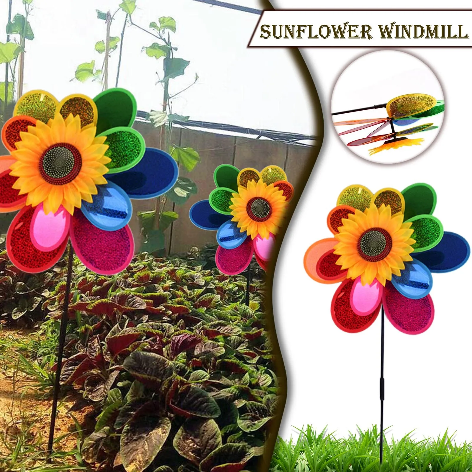 Színes Kettős Rétegű, Flitteres Napraforgó Szélű Fonók Szélmalom Gardineria Dekoracion A Kerthez És