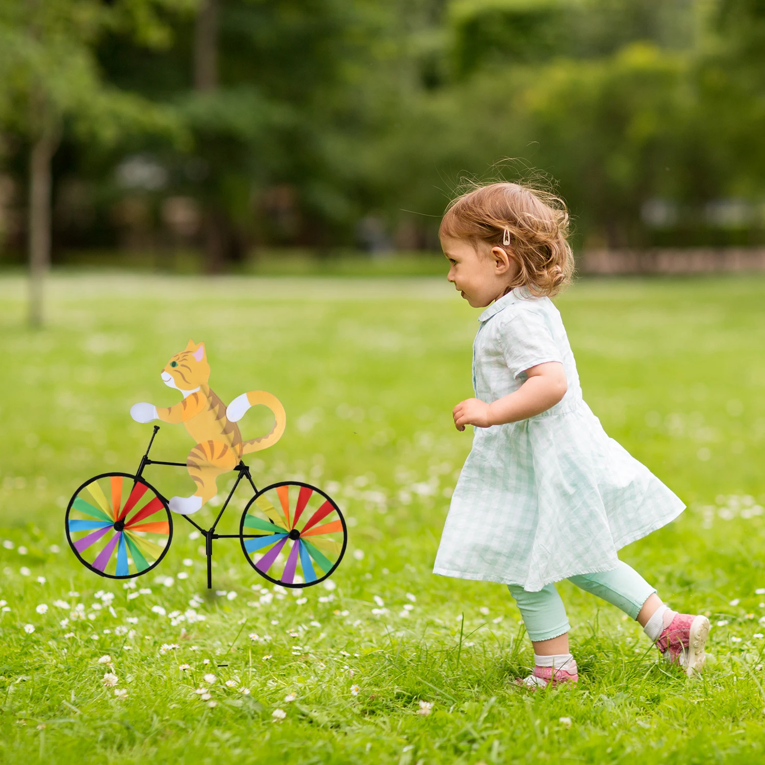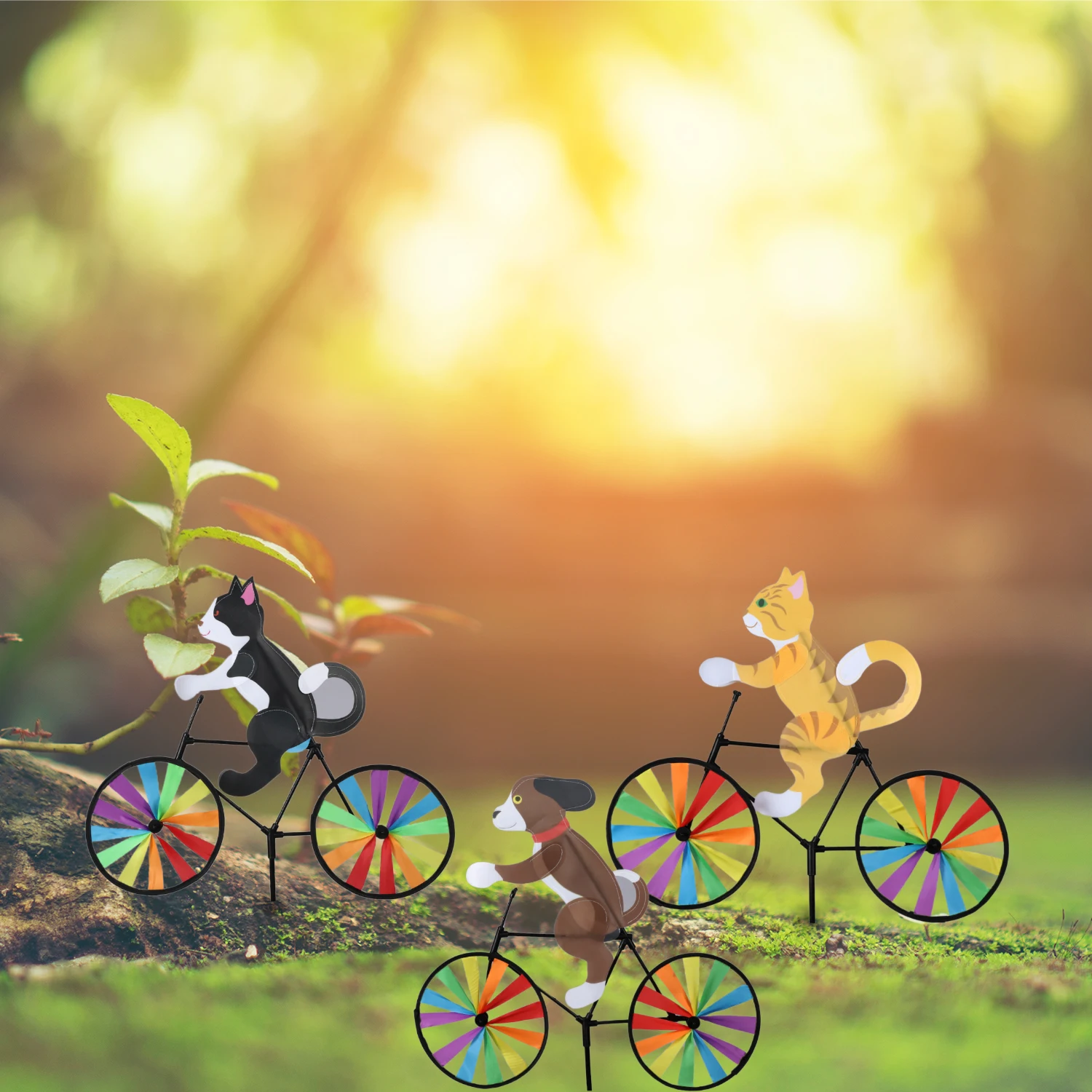Szivárványos Fonó Szélmalom Macska Kutya Tigris Kerékpár Diy Kerékpáros Szél Forgókert Kerti Gyep Dekoratív Eszközök Gyerekek Játékok