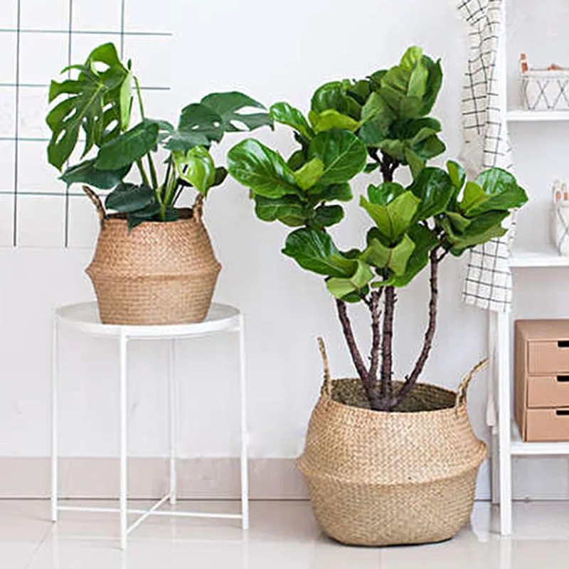 Szövött Piszkos Tároló Tengeri Fű Fonás Wickerwork Rattan Függő Virágcserép -Növény Szervező Kerti Eszközök Tartó Színe Kashpo