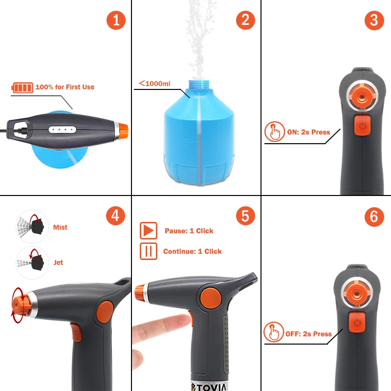 T Tovia Automatikus Öntöző Permetező Akkumulátor Elektromos Kerti Permetezőgép 1L Állítható Áramlás Újratölthető Háztartási Tisztítás