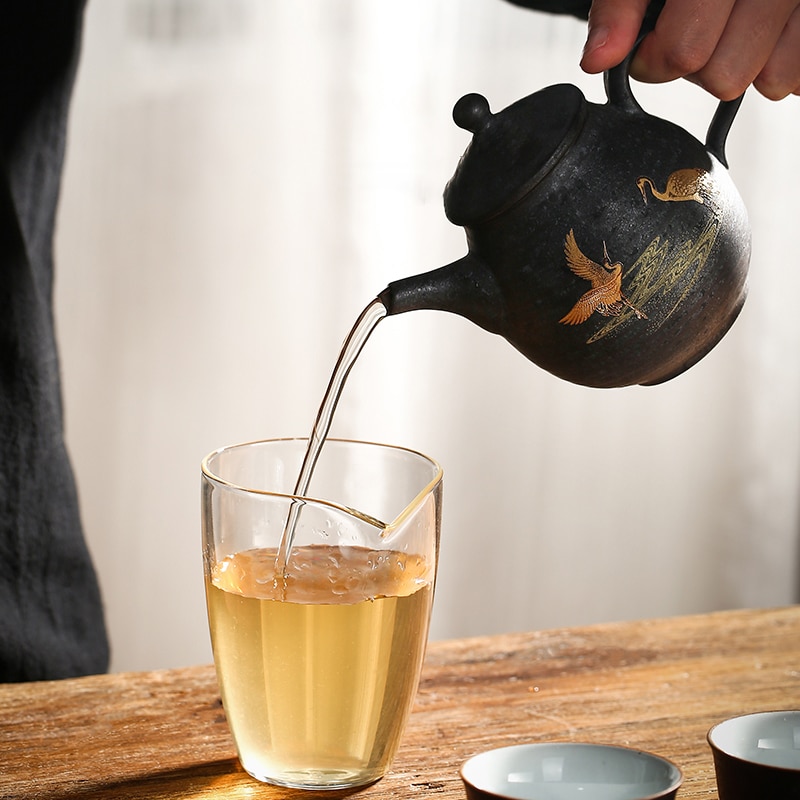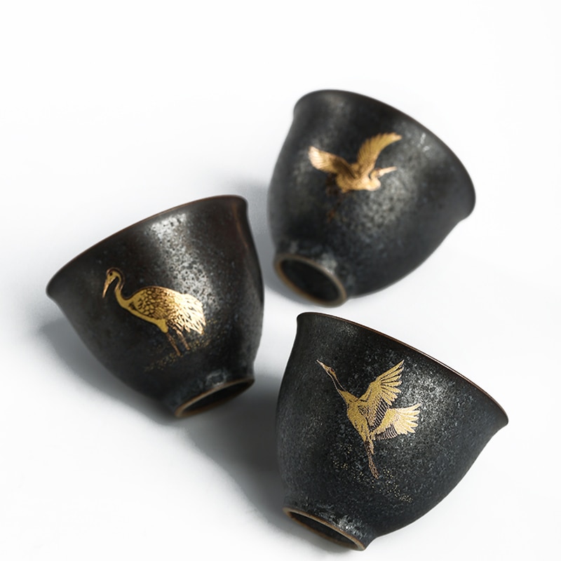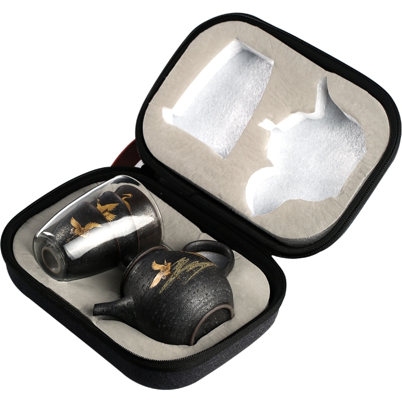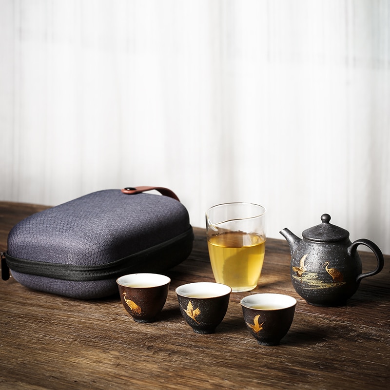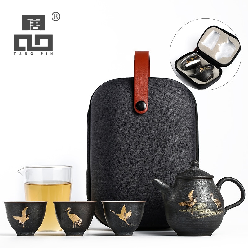 Tangpin Fekete Edények Kerámia Teáskanna 3 Csésze Repülő Daruval Hordozható Utazási Teáskészlet Drinkware