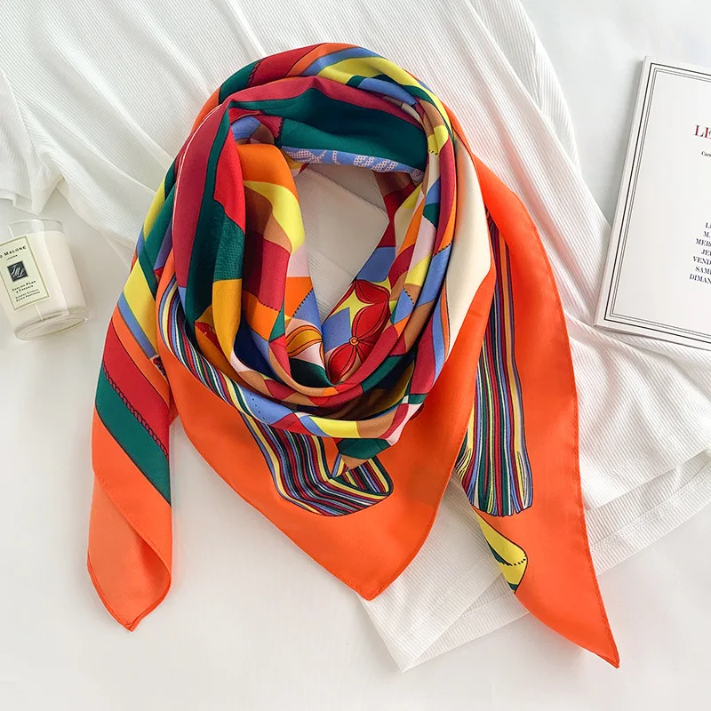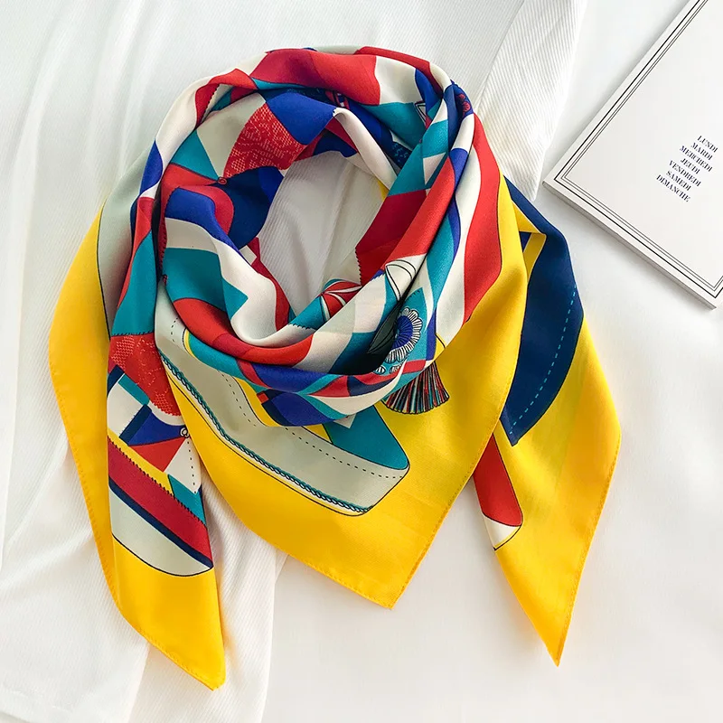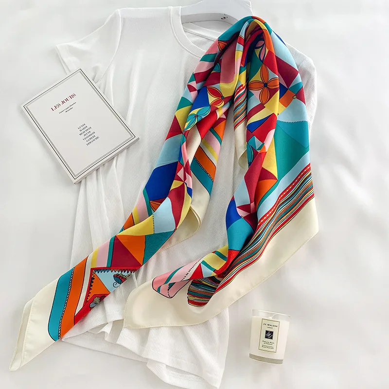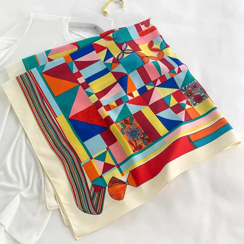 Tavaszi És Nyári Divat Nyomtatás Nagy Négyzet Alakú Sál Nők Színes Geometriai Minta Szimulációs Selyem Sálak Fényvédő Hosszú Kendő