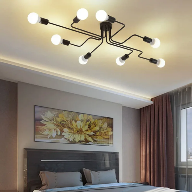 Többszörös Rúd Kovácsoltvas Csillár A Nappali Vintage Lámpái Ipari Tetőtér Északi Otthoni Világítótestek