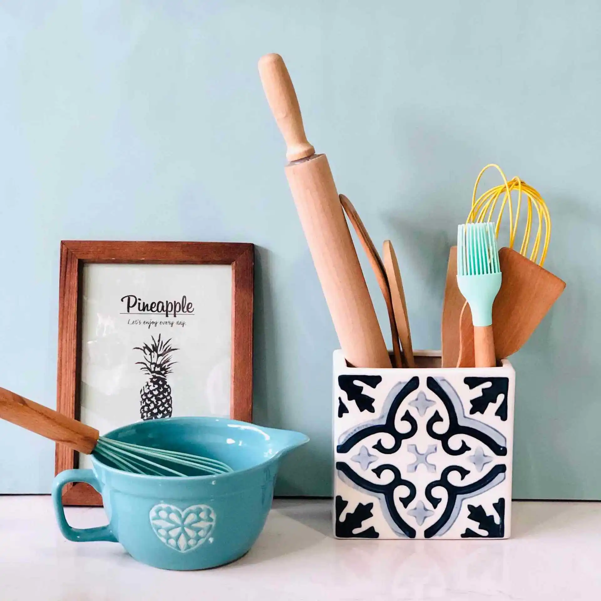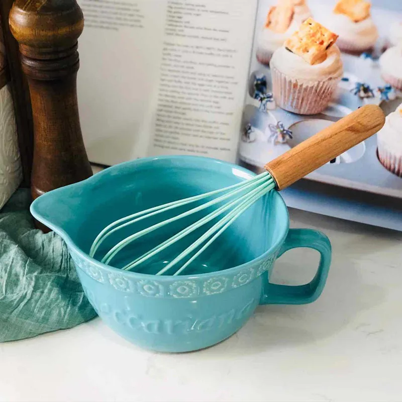 Tojás Tál Ins Vintage Keverő Leves Saláta Fogantyú Fülkék Csőr Vízelvezető Kerámia Verés Sütőszerszámok