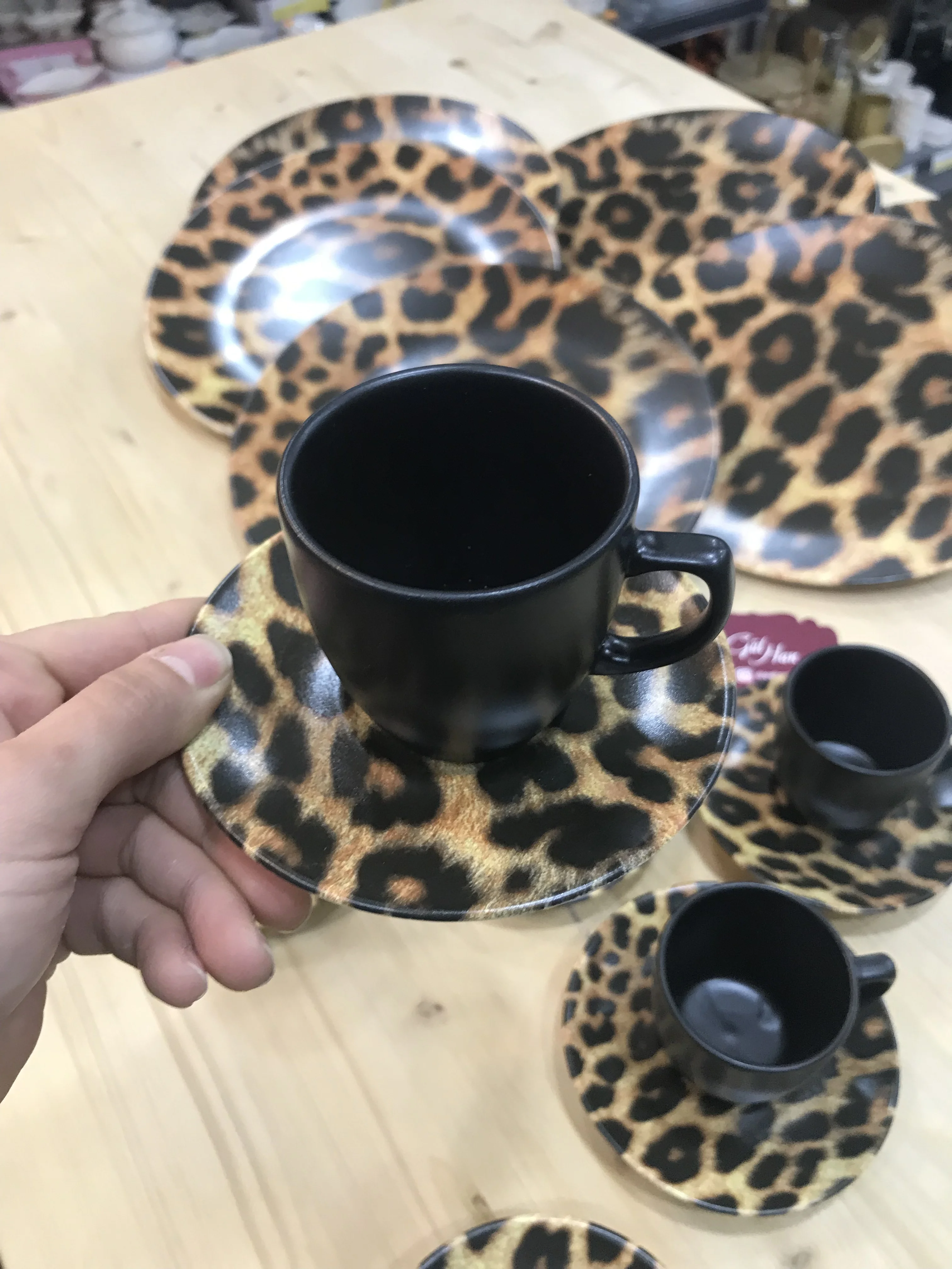 Török Kávéscsésze Szett 12 Darab Leopárd Minta 6 Üléses Kerámia