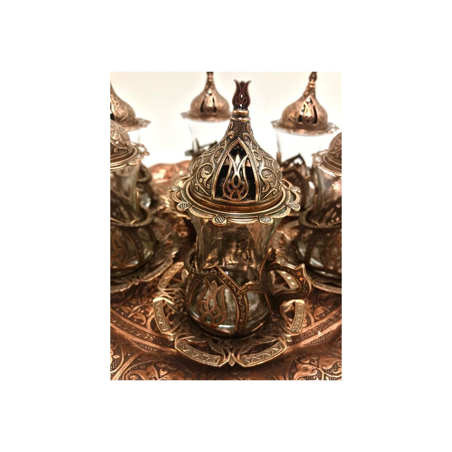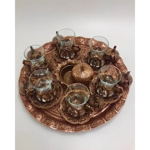 Török Oszmán Tea Üvegkészlet Tulipán Mintás Réztálca És Teaüveg Öröm Tál Hagyományos Réz Gravírozott