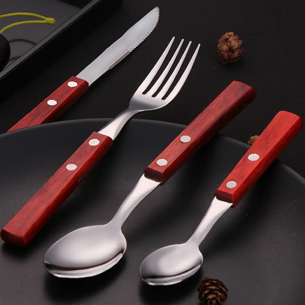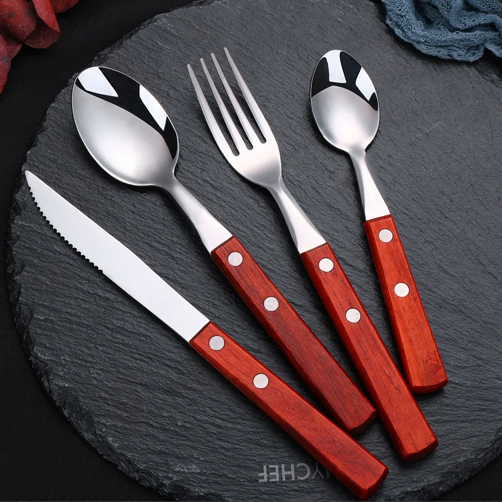 Tükör Arany Rozsdamentes Acél Evőeszközök Villák Kések Kanál Teljes Vacsora Vacsora Készlet Konyha Asztalkészlet